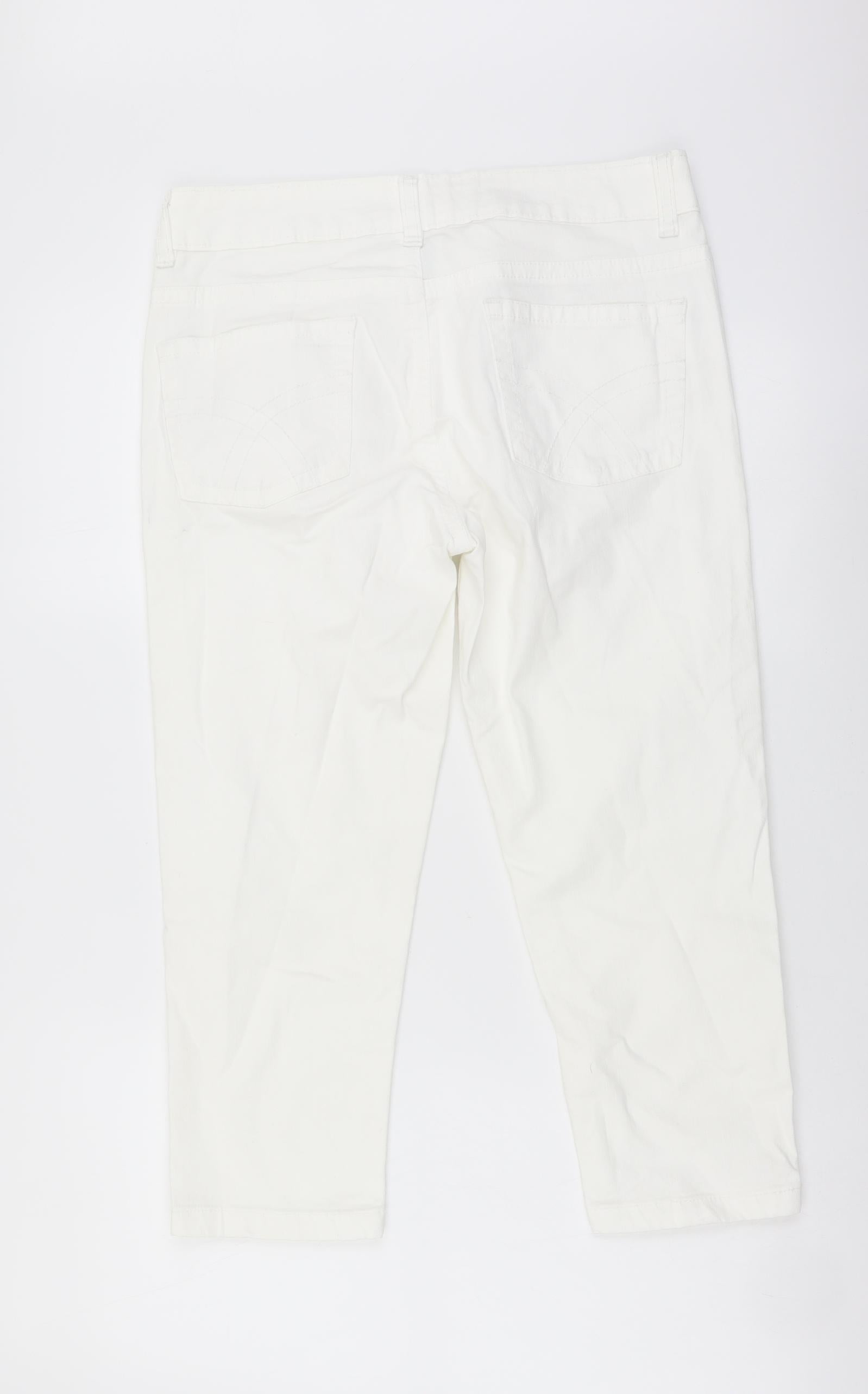 Denim & Co. Womens White Cotton Cropped Jeans Size 12 L20 in Regular Button