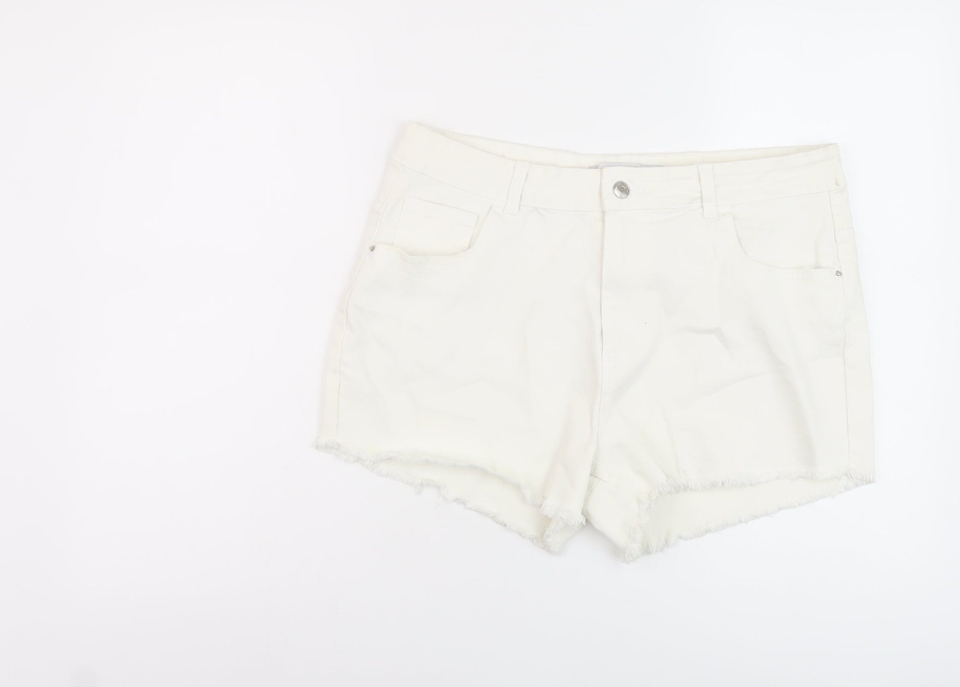 Denim & Co. Womens White Cotton Hot Pants Shorts Size 16 L4 in Regular Button
