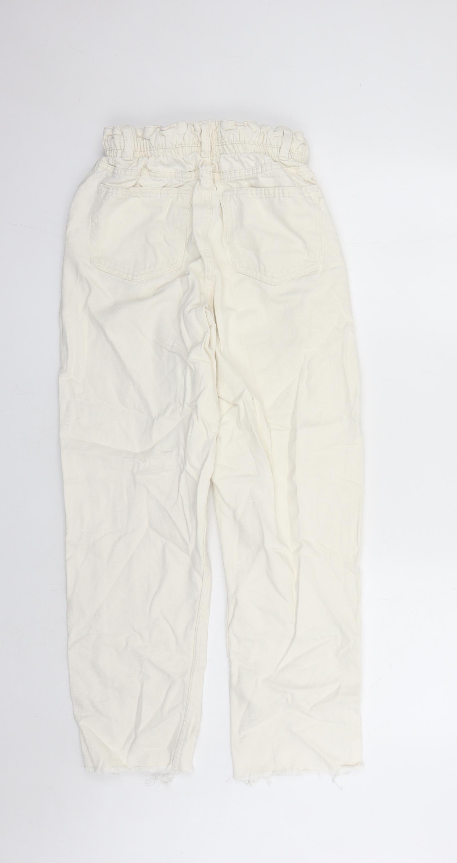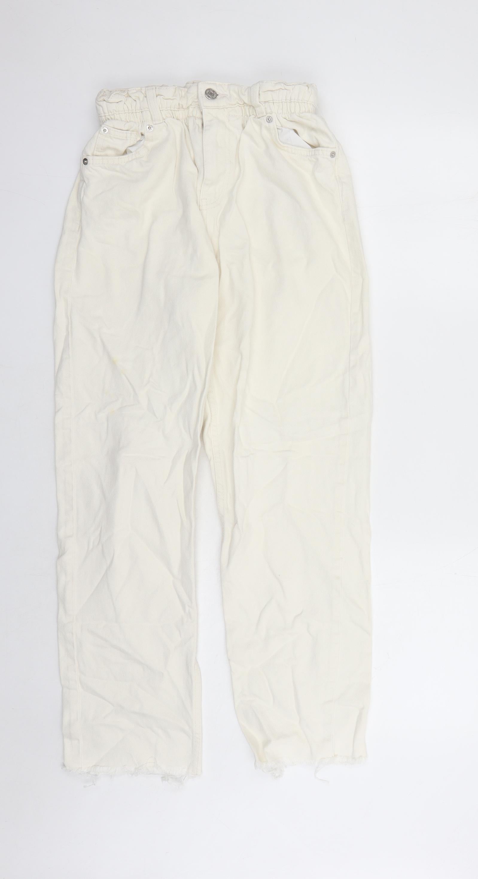 Denim & Co. Womens White Cotton Straight Jeans Size 8 L27 in Regular Zip - Elasticated Waist Pockets