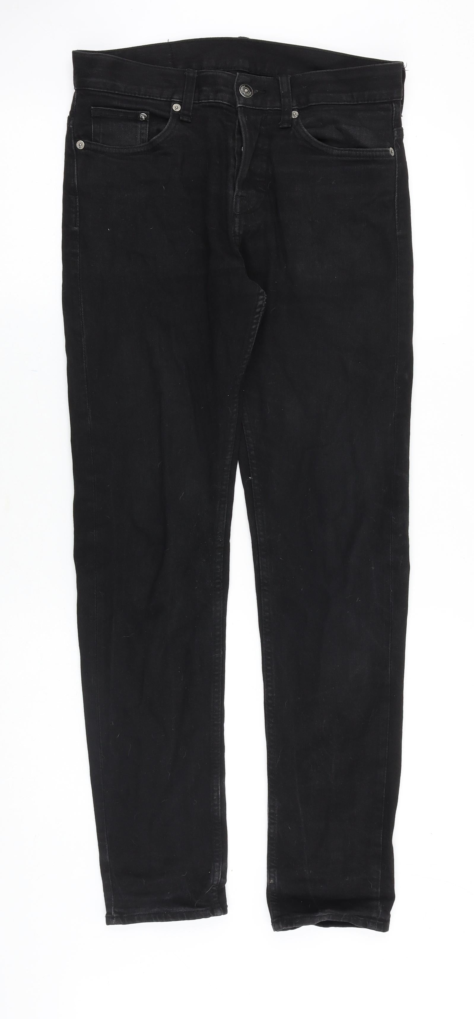 &Denim Mens Black Cotton Straight Jeans Size 28 in Slim Button