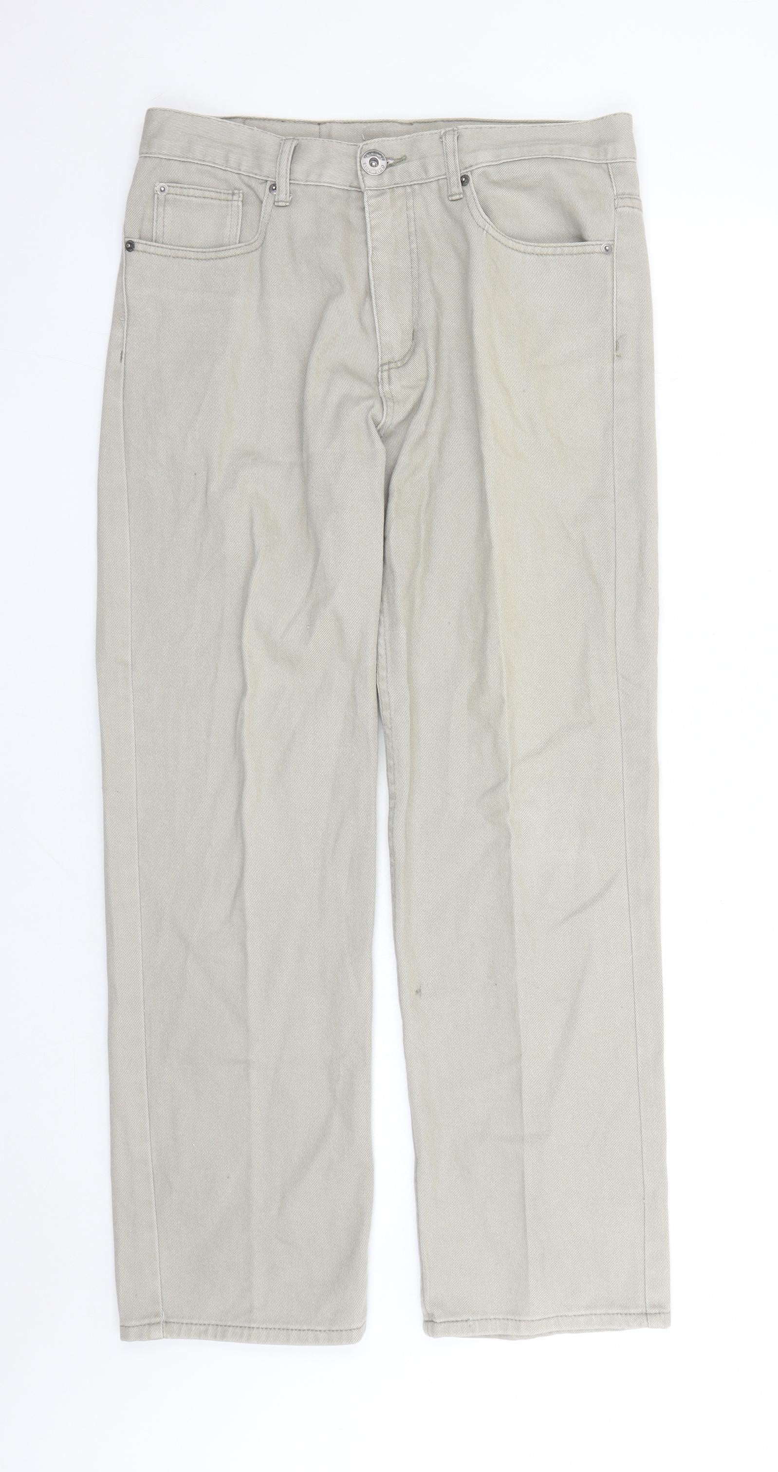 Denim Originals Mens Beige Cotton Straight Jeans Size 32 in L29 in Regular Zip
