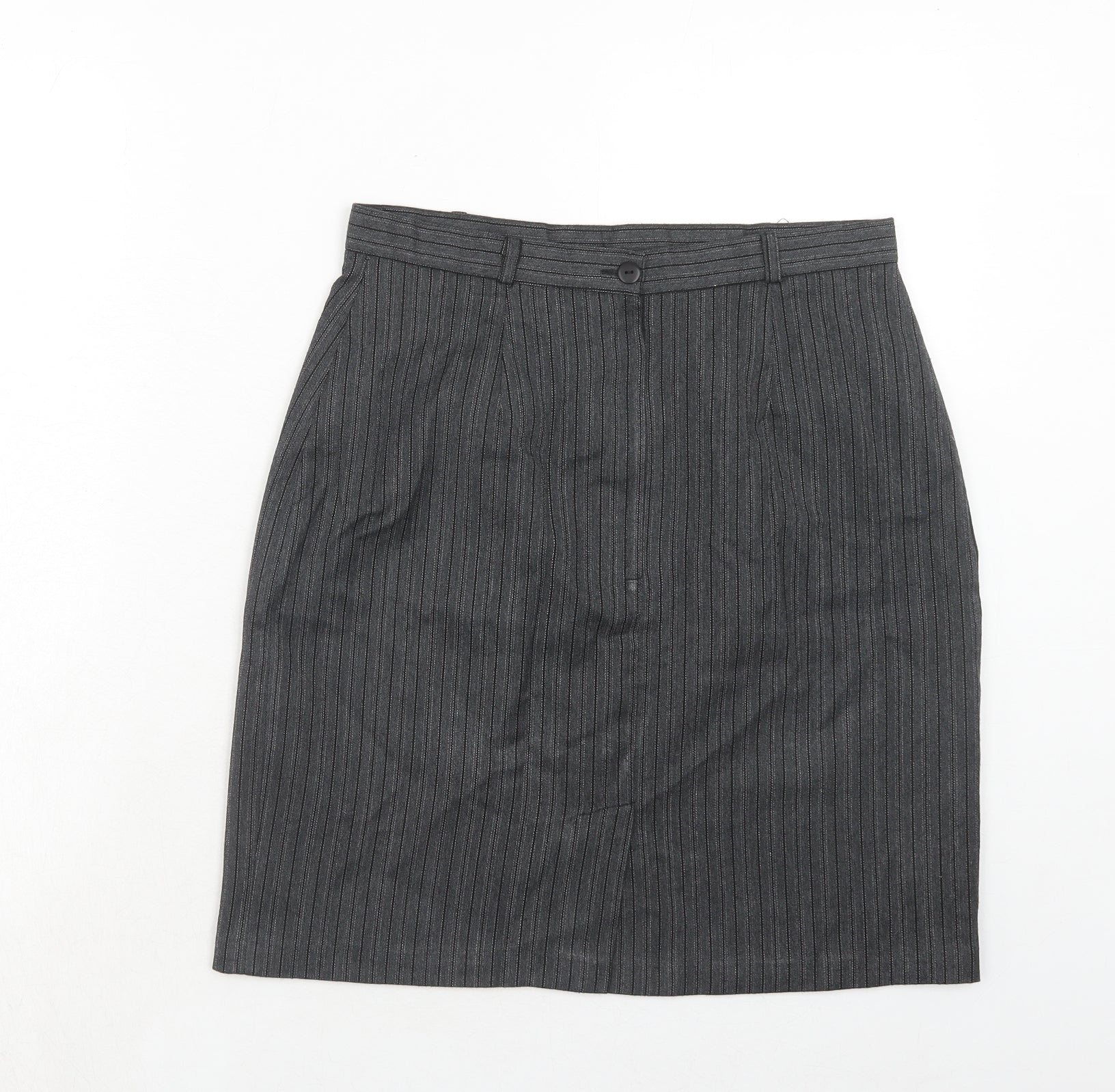 Design Essentials Womens Grey Striped Polyester A-Line Skirt Size 16 Zip