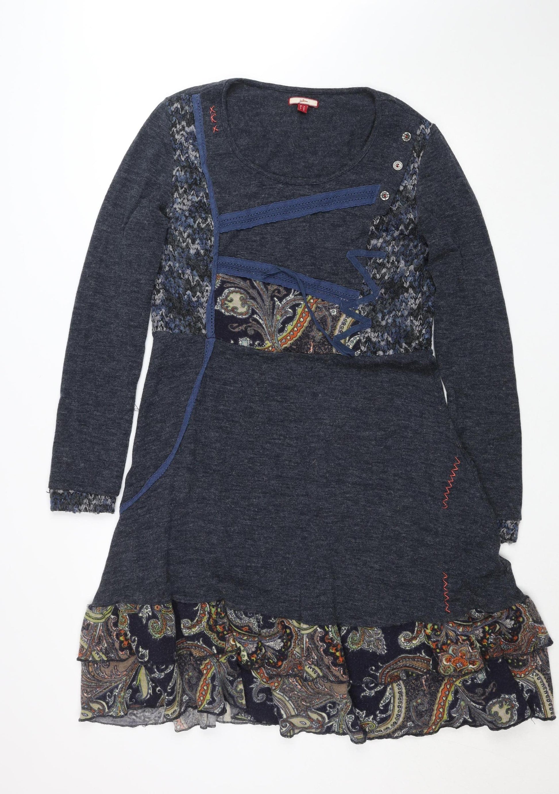 Desigual Women Blue Paisley Knee Length A-Line Dress M