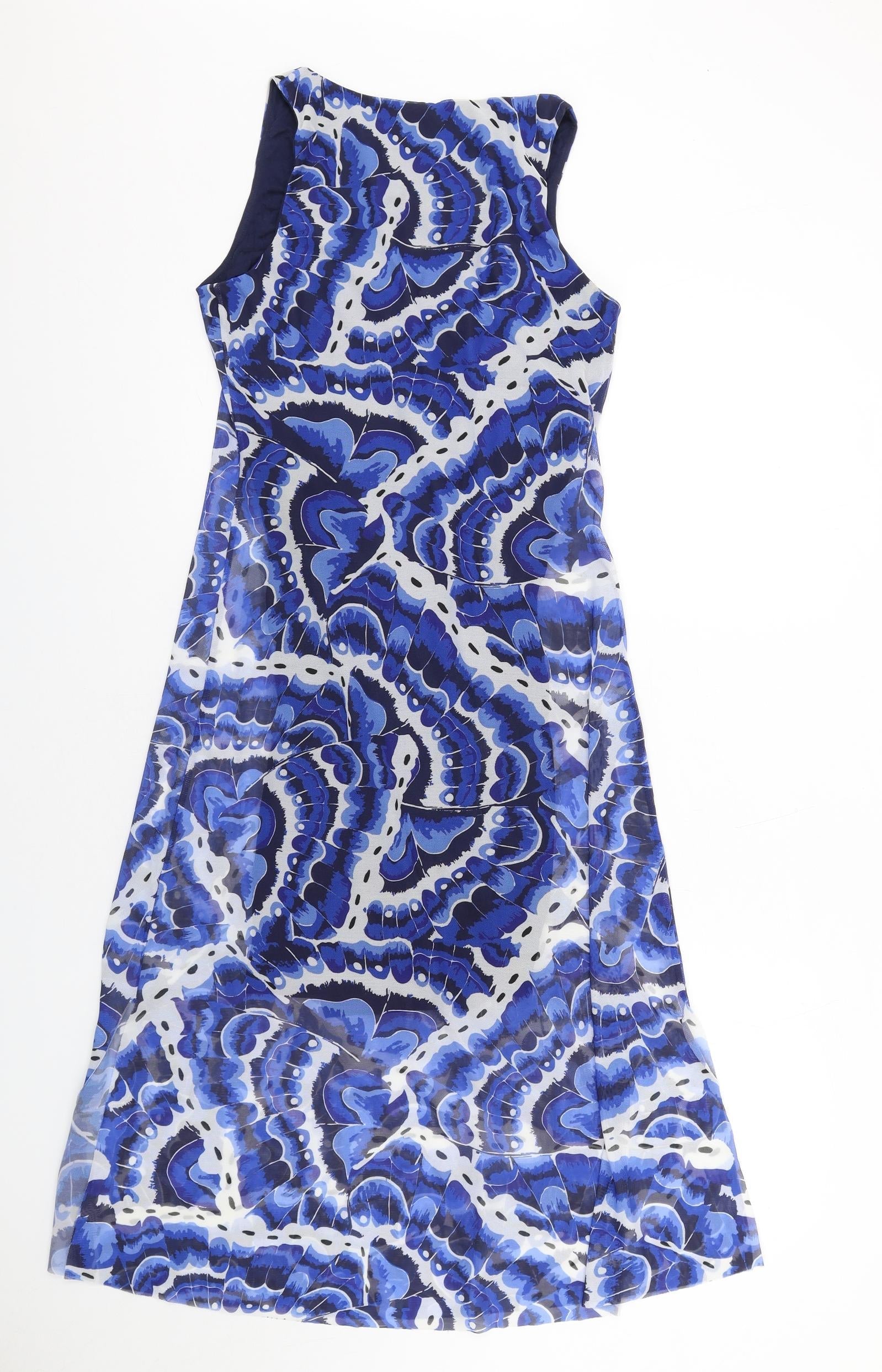 Desigual Womens Blue Geometric Polyester A-Line Size S V-Neck Pullover