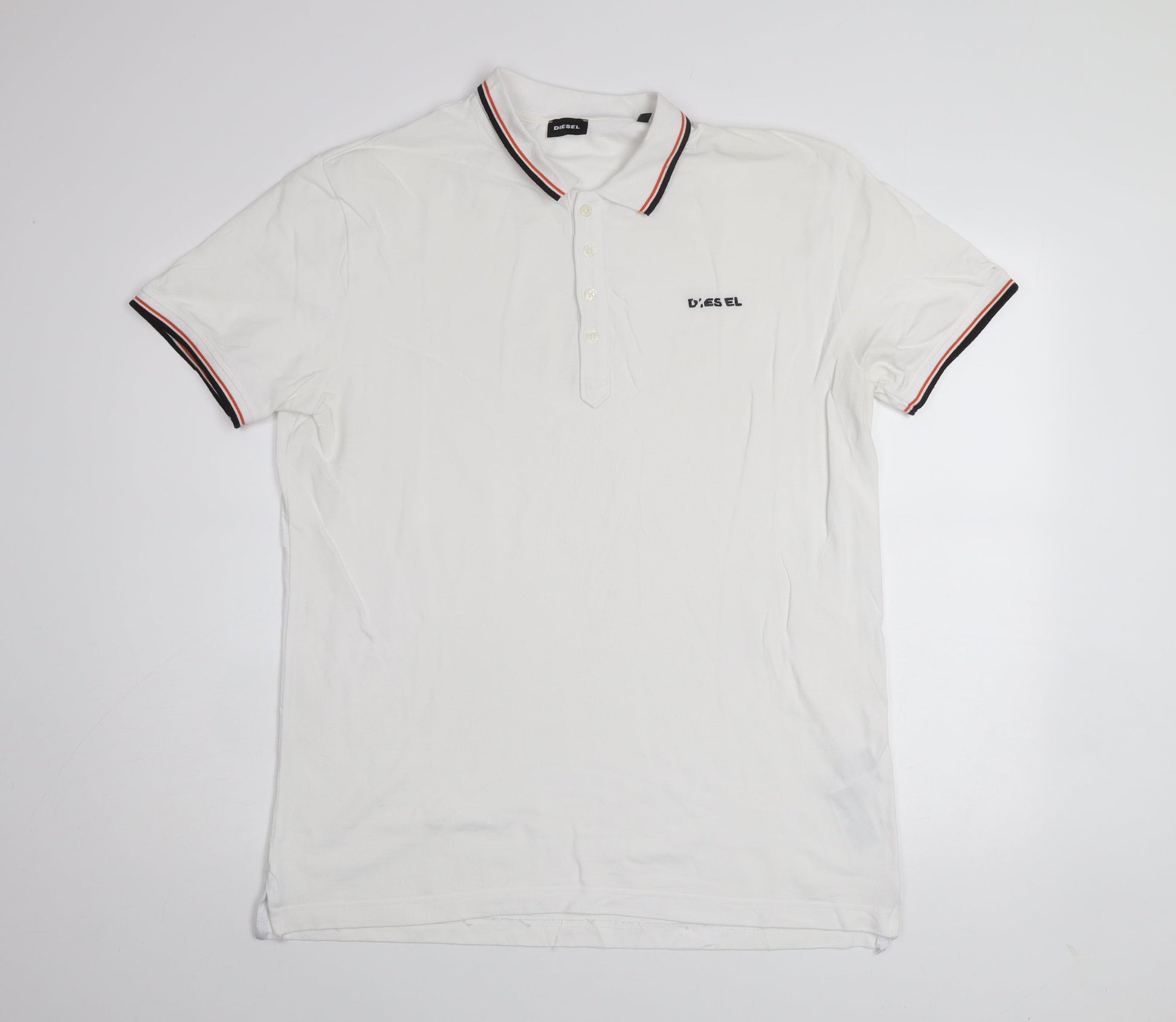 Diesel Men's White XL Polo Shirt 100% Cotton Classic Collar Casual Top