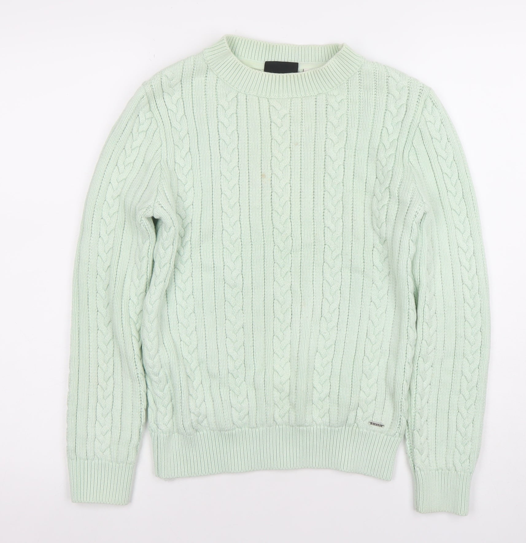 Diesel Women's Green Cable-Knit Crew Neck Jumper Size S