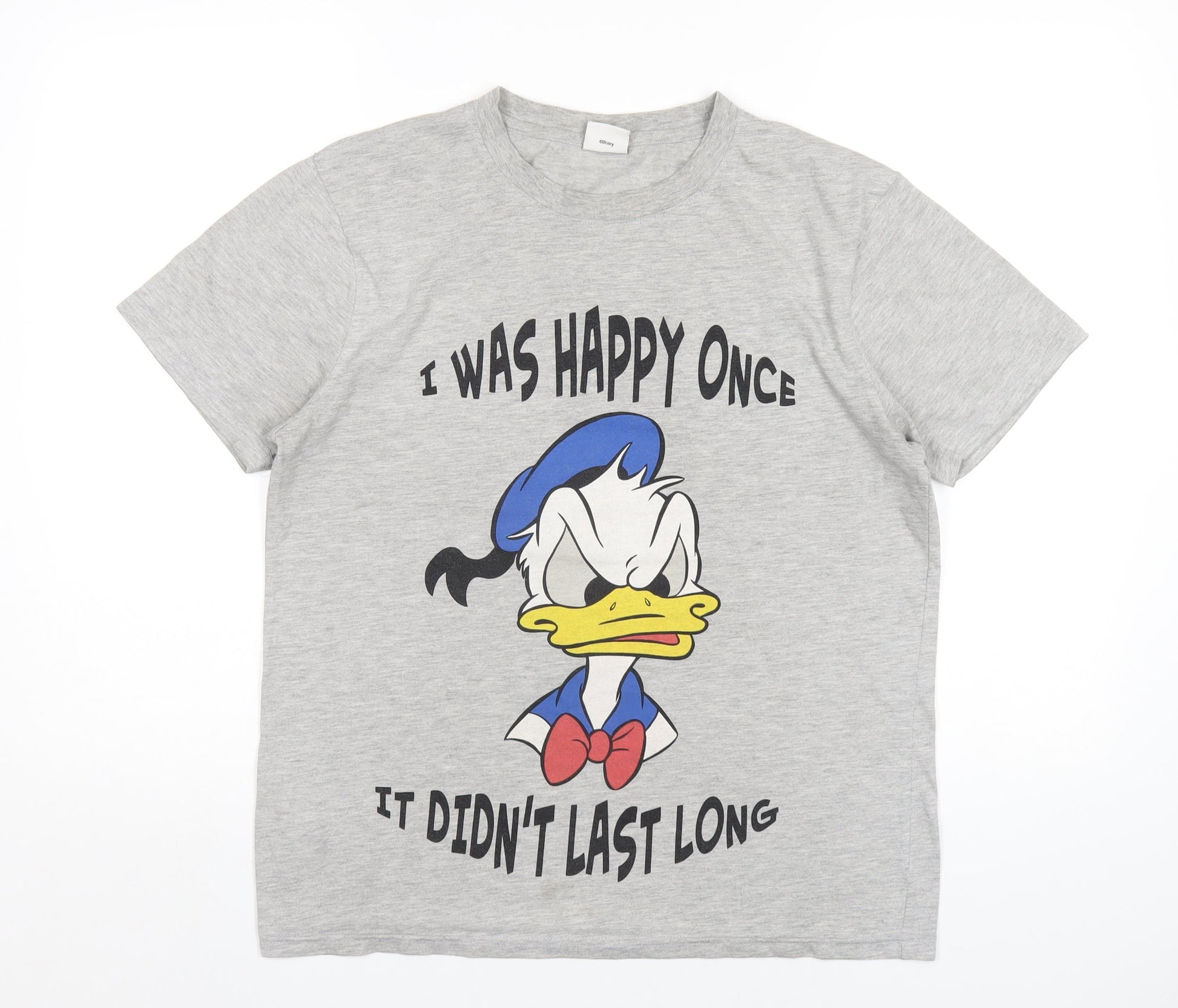 Disney Mens Grey Polyester Polo Size L Collared Pullover - Daffy Duck