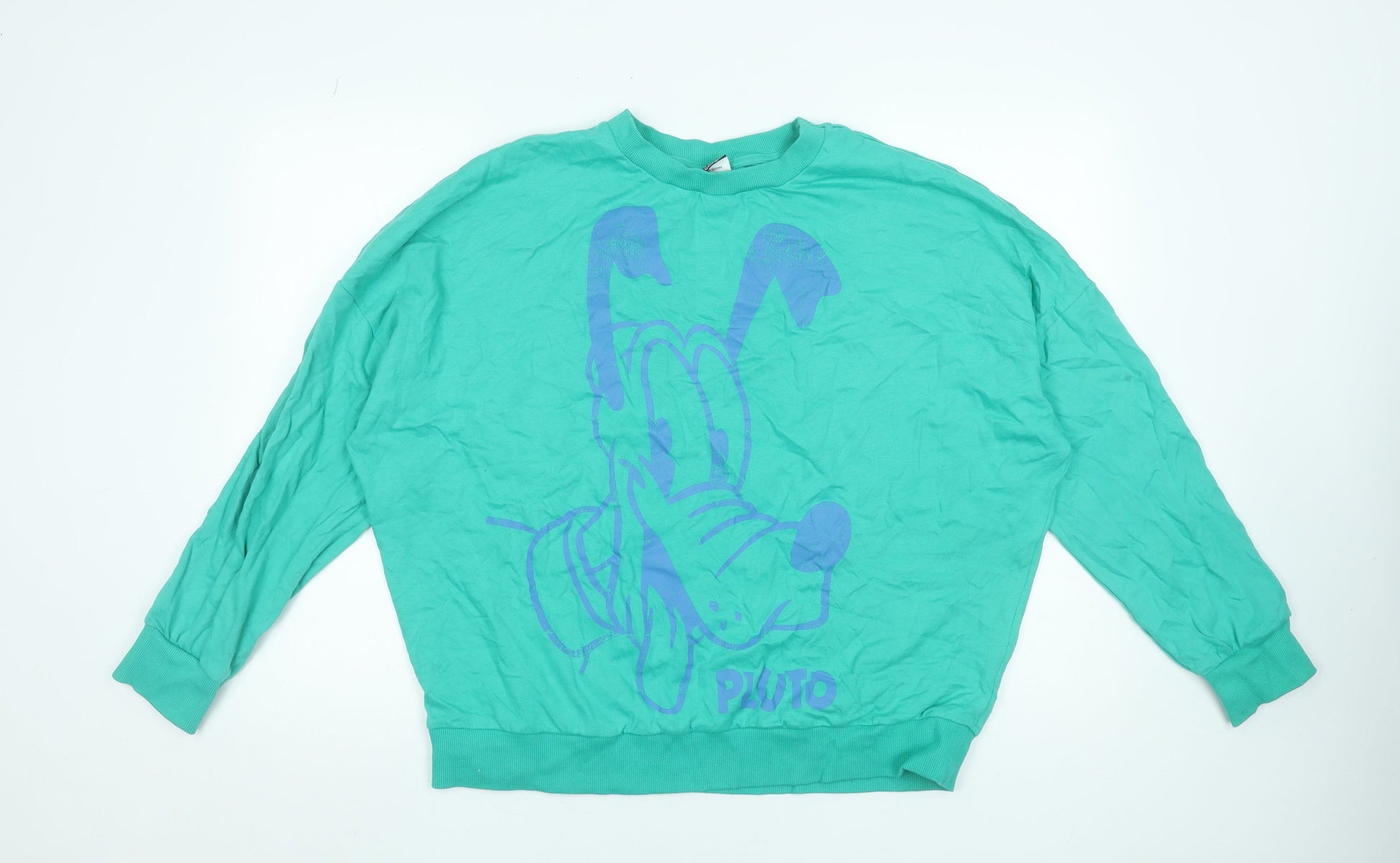 Disney Pluto Green Sweatshirt by George Women L 16-18 Cotton Graphic