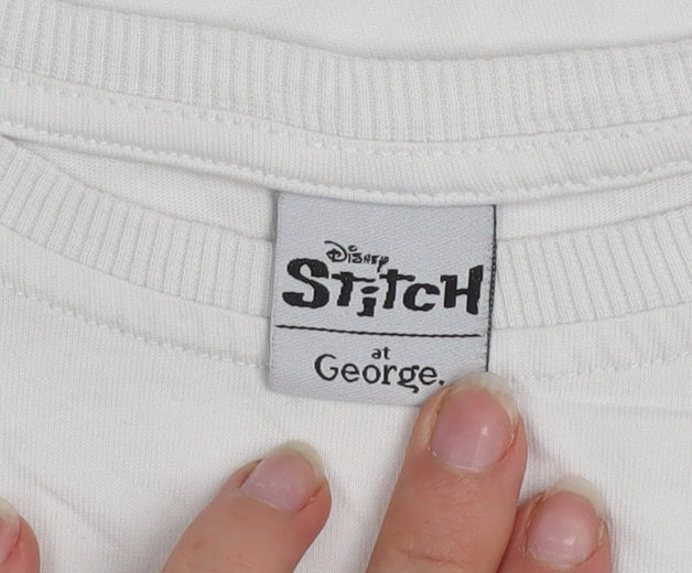 Disney Stitch Girls White T-Shirt by George 8-9 Years Short Sleeve Cotton