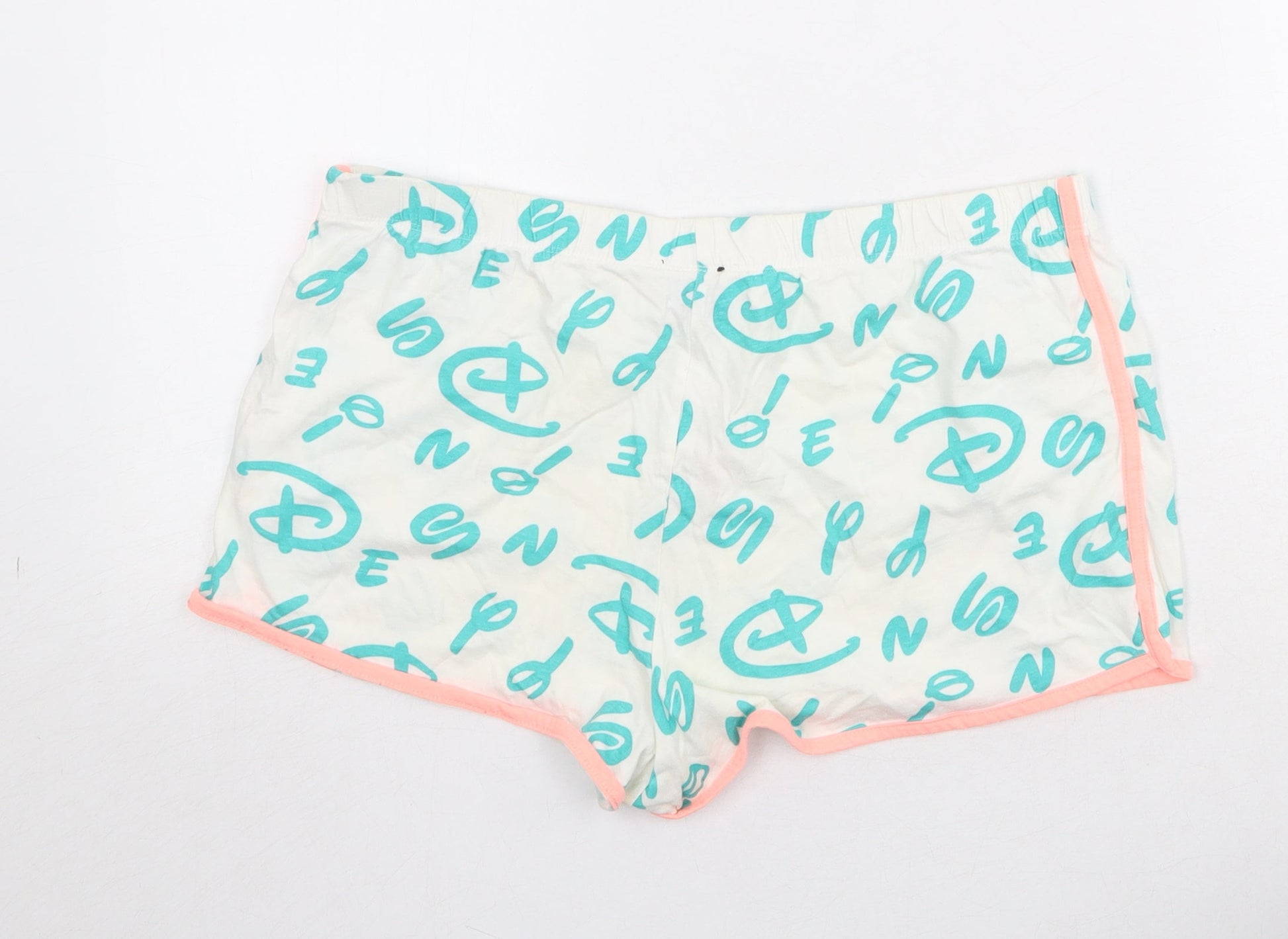 Disney Womens White Geometric Cotton Sweat Shorts Size M Regular Drawstring