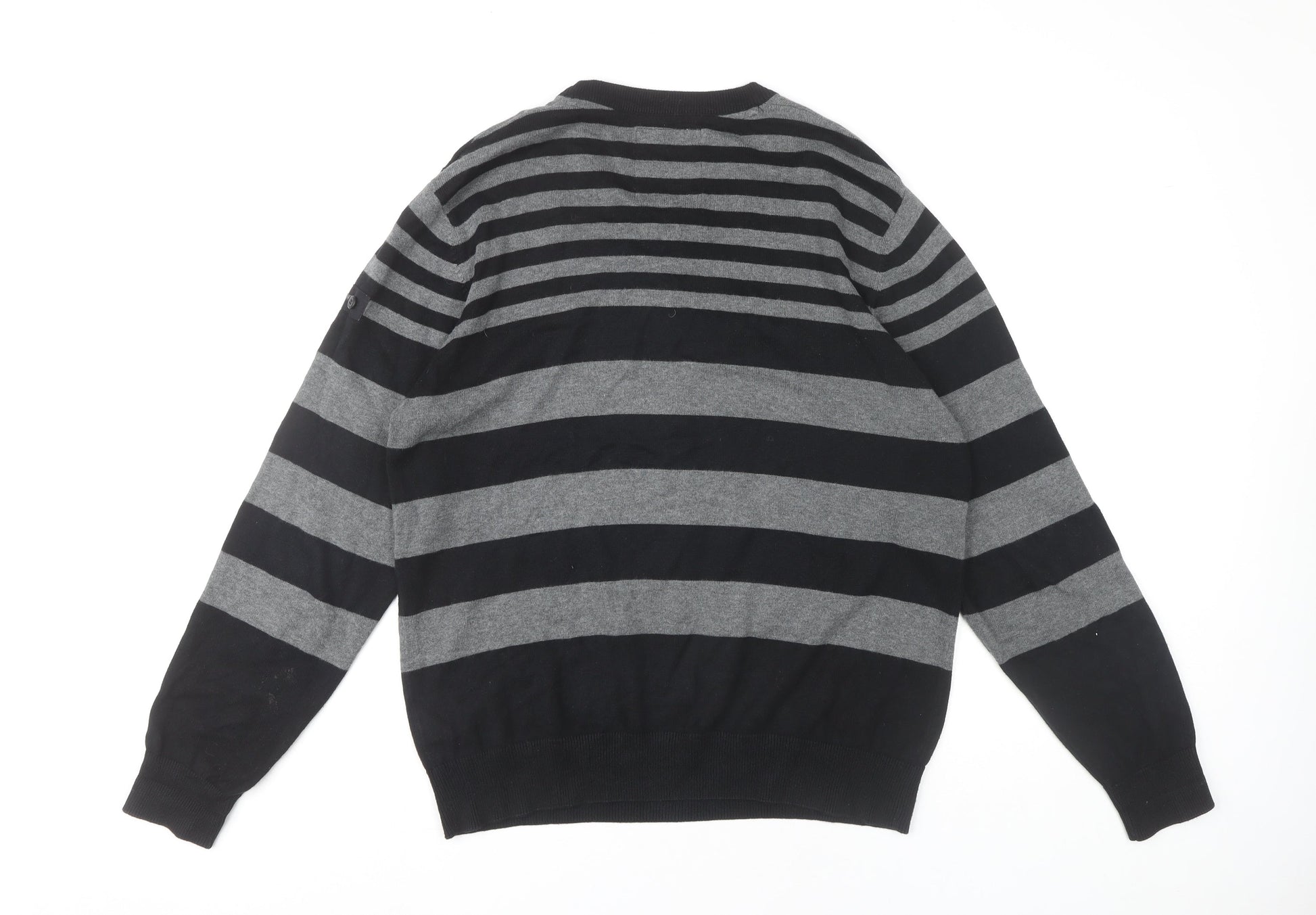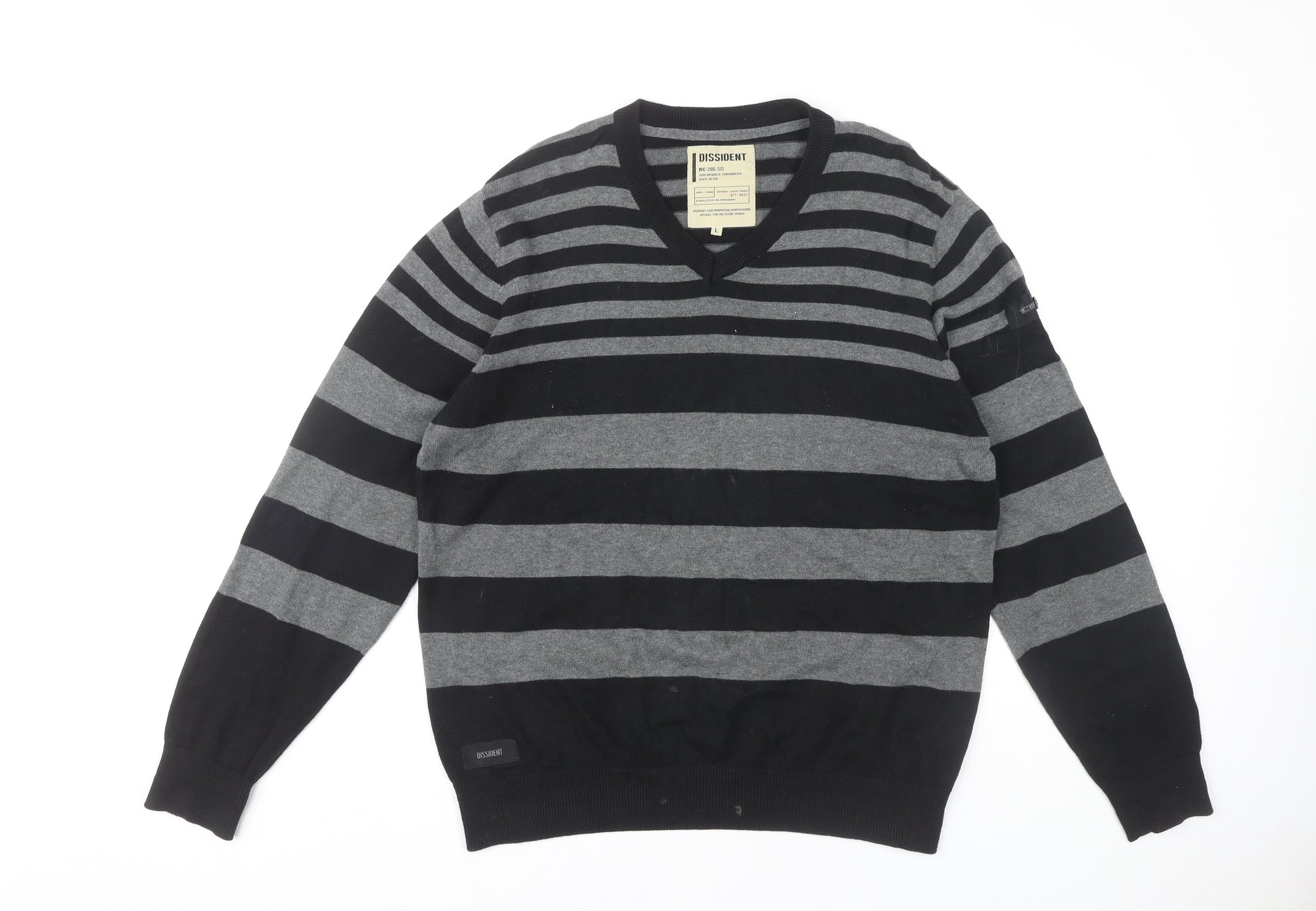 Dissident Men's Black Striped Cotton Pullover Jumper L