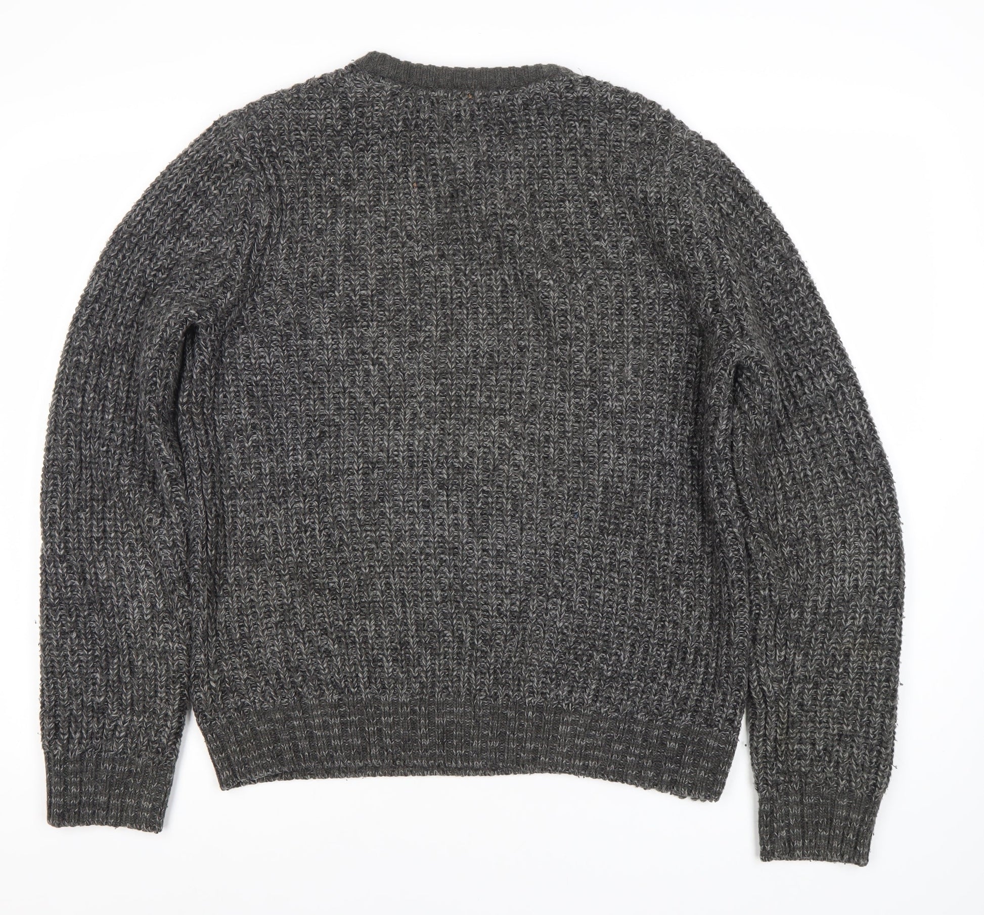 Dissident Men's Grey Chunky-Knit Pullover Jumper M