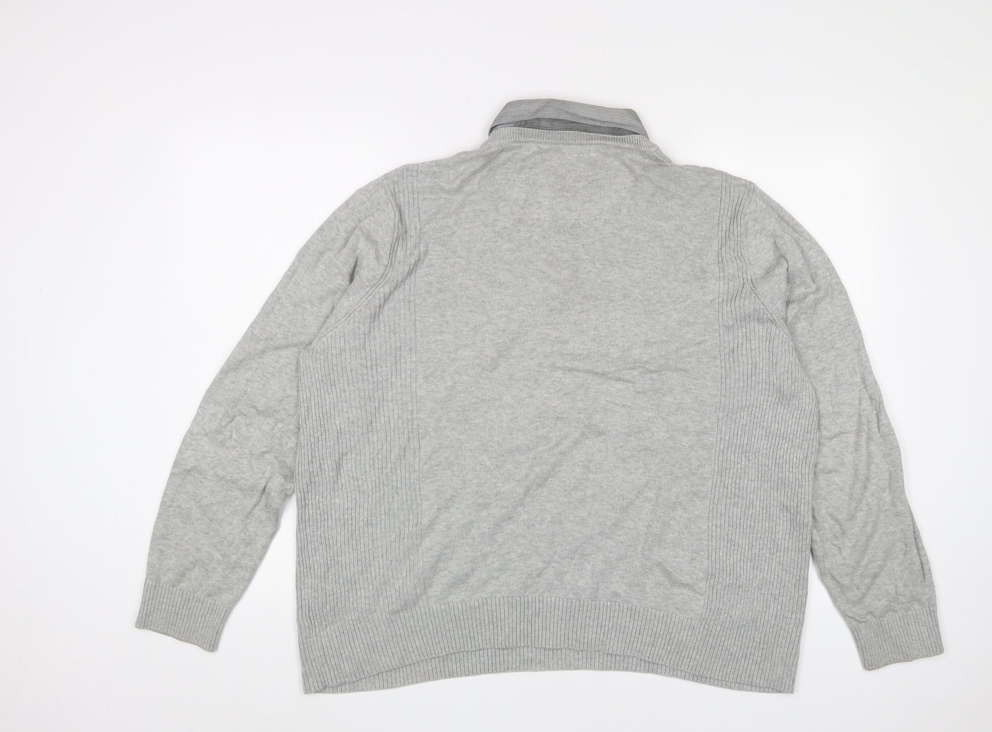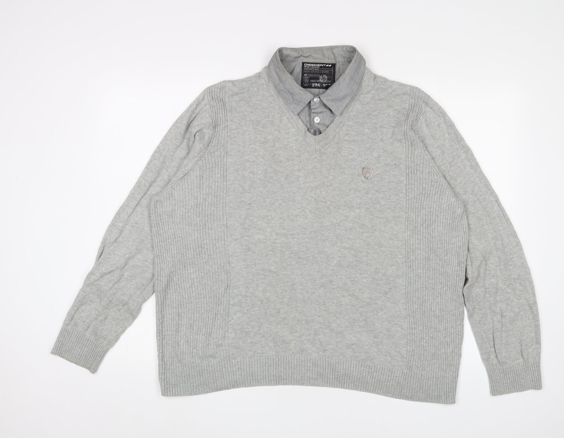 Dissident Mens Grey Collared Cotton Pullover Jumper Size L Long Sleeve - Logo