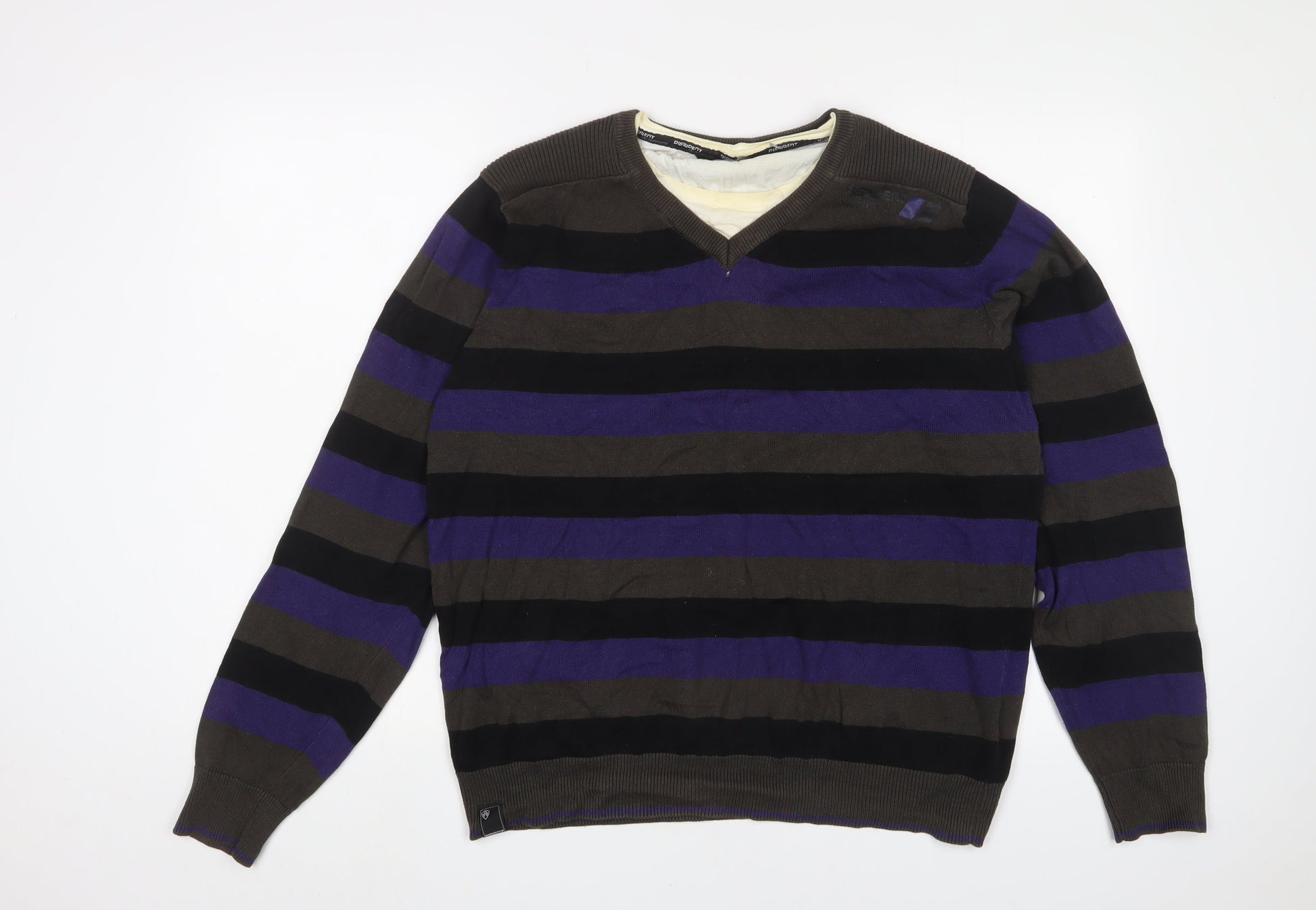 Dissident Mens Purple Crew Neck Striped Cotton Pullover Jumper Size XL Long Sleeve - Logo