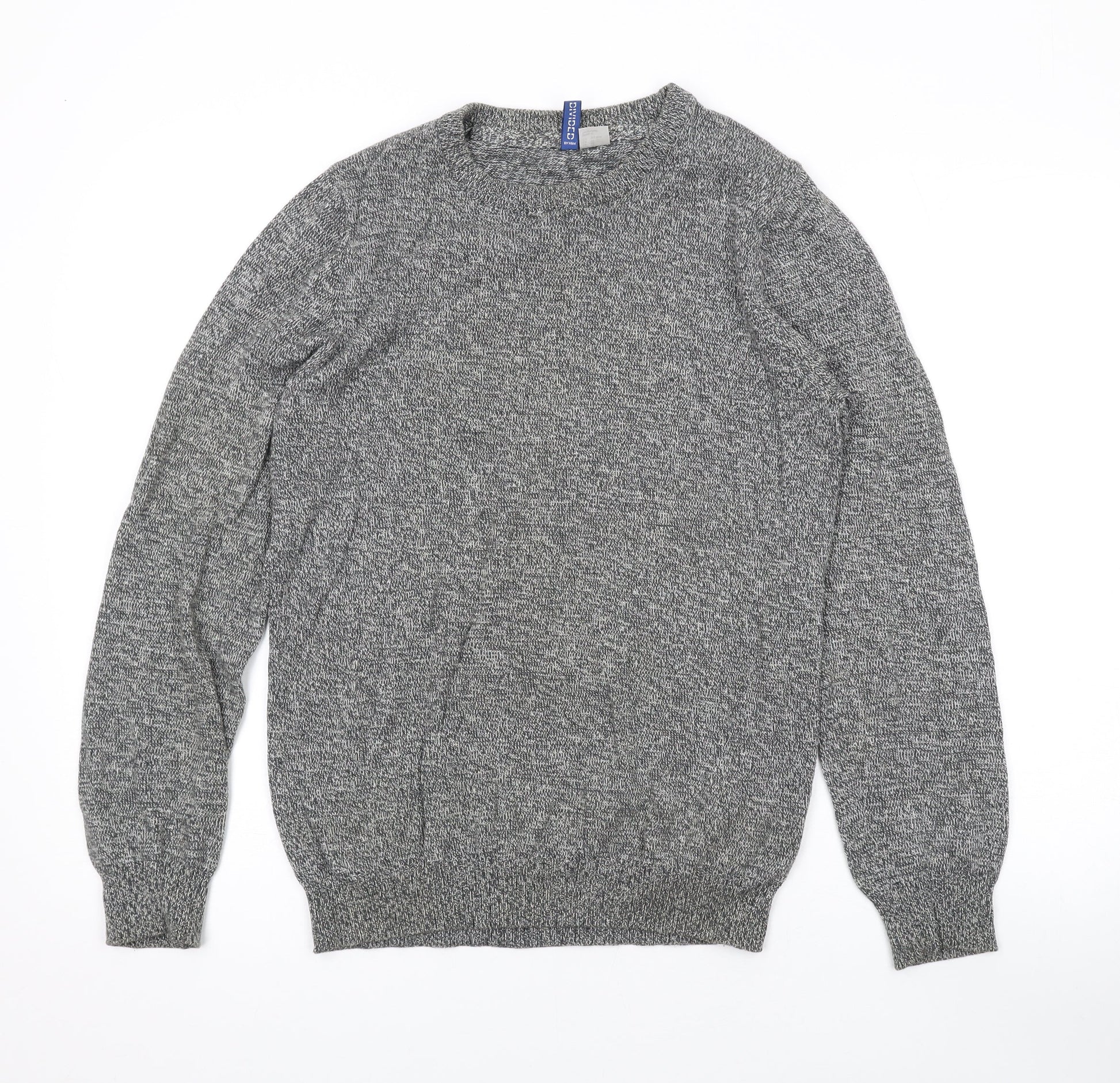 Divided by H&M Mens Grey Round Neck Cotton Pullover Jumper Size XS Long Sleeve