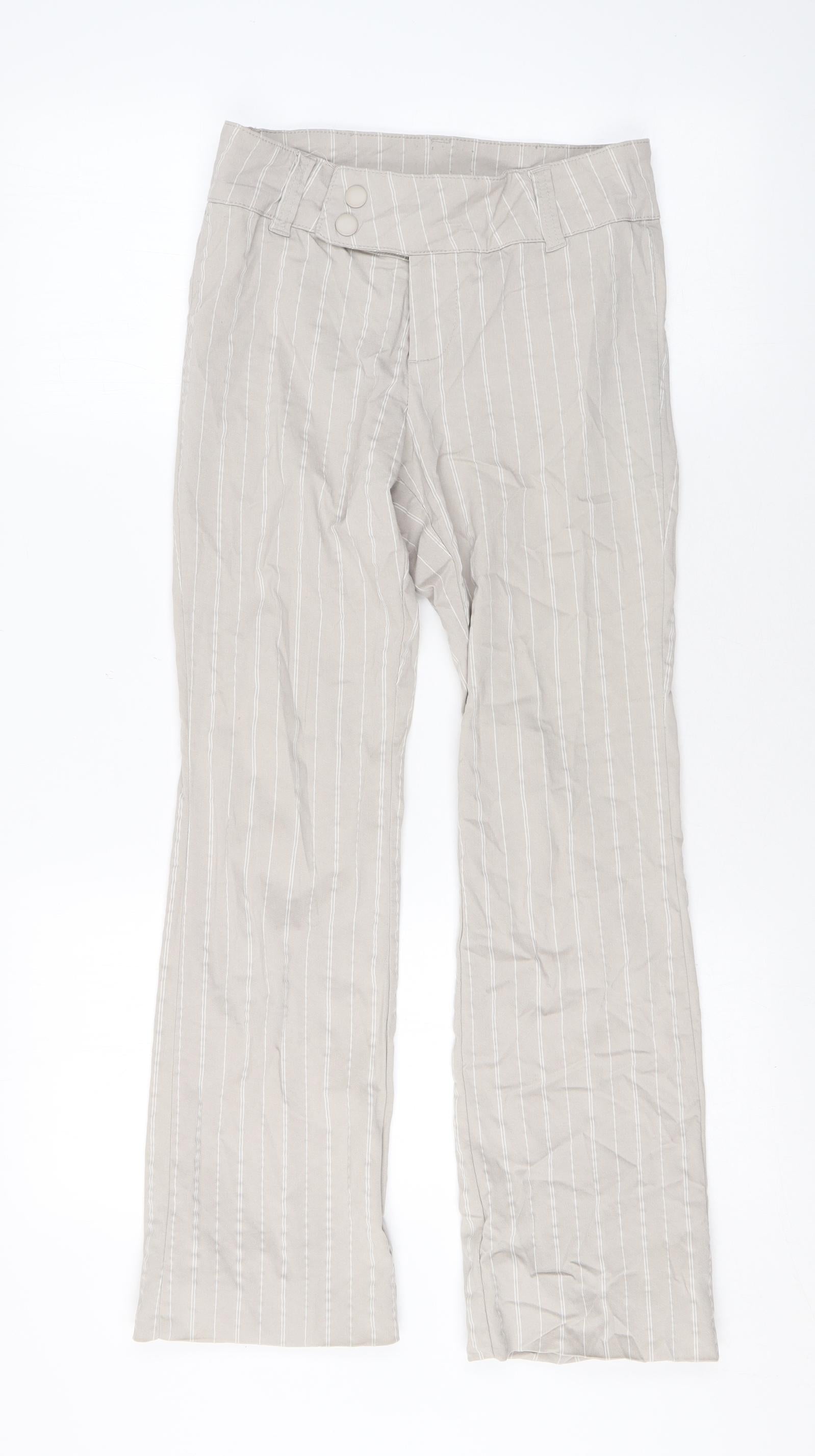 Divided by H&M Womens Beige Striped Viscose Trousers Size S L27 in Regular Zip