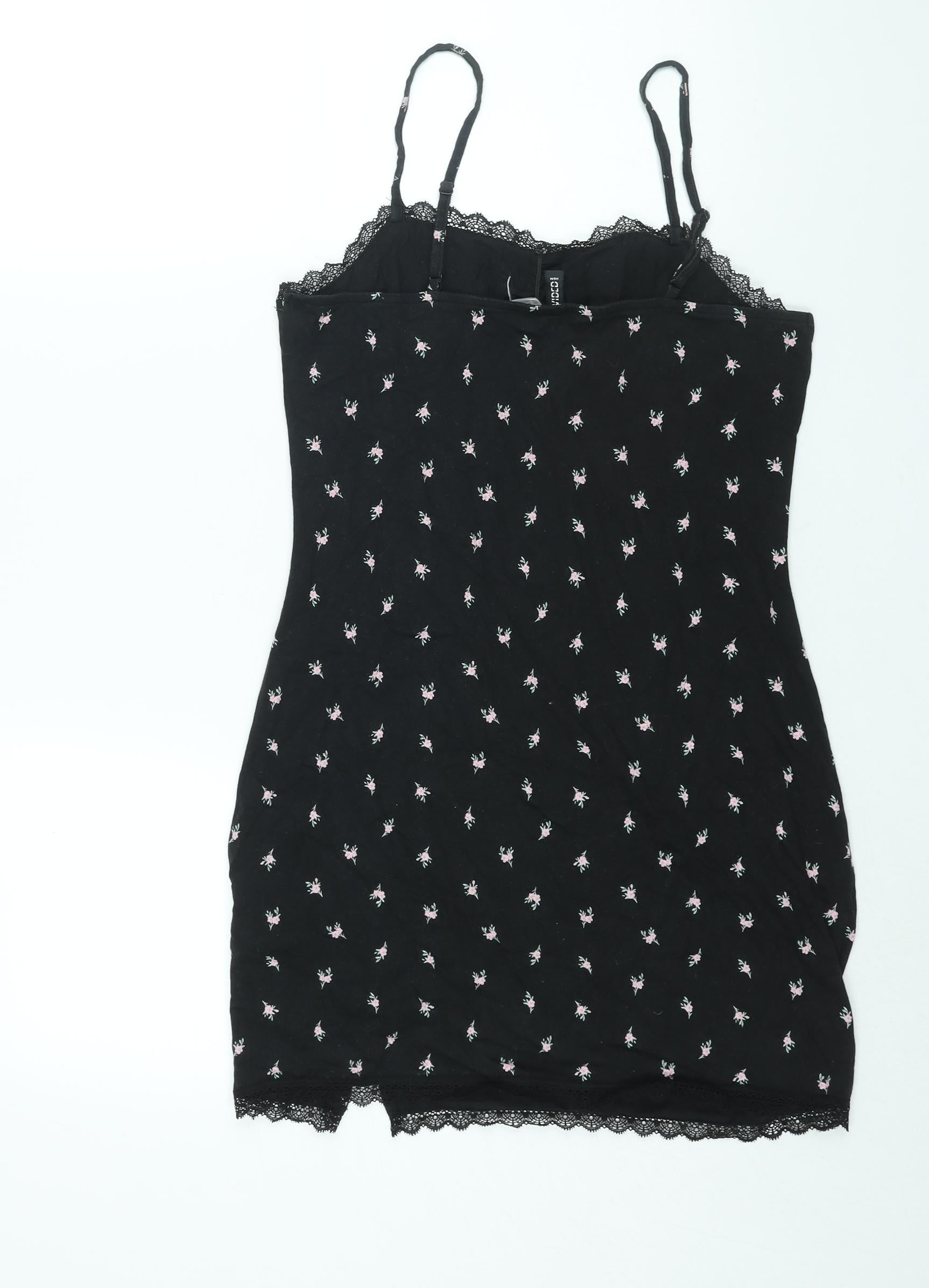 Divided by H&M Womens Black Floral Cotton Mini Size M Sweetheart Pullover - Lace Trim