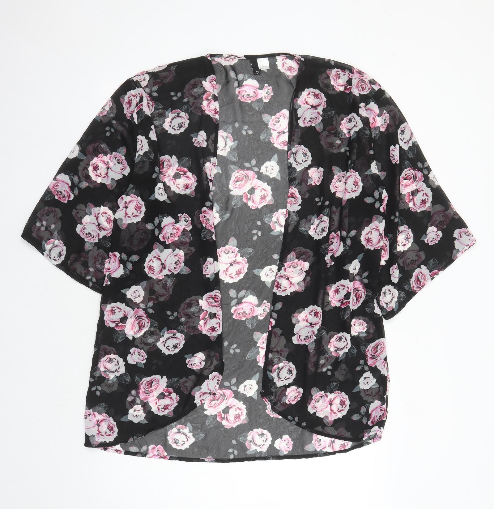 Divided by H&M Womens Black Floral Polyester Kimono Blouse Size S V-Neck