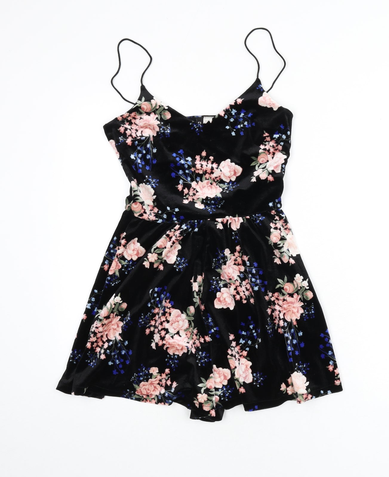 Divided by H&M Womens Black Floral Polyester Romper One-Piece Size 8 Pullover