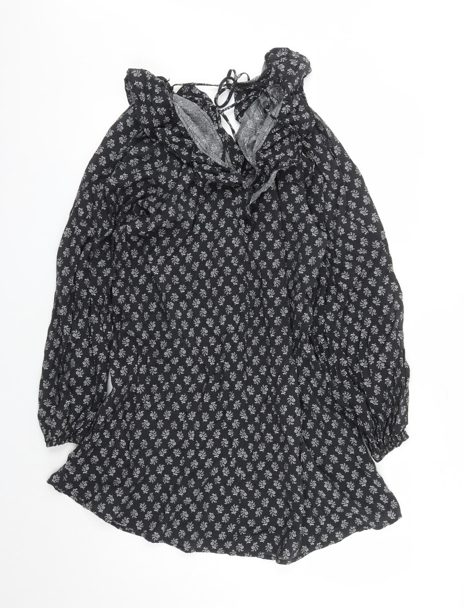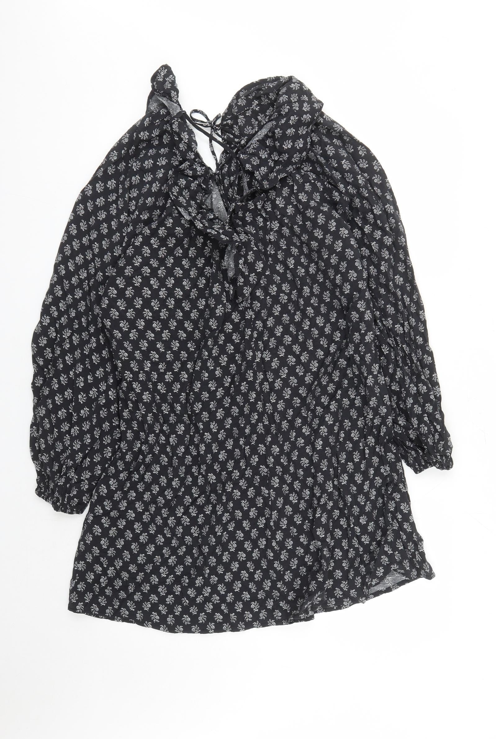 Divided by H&M Womens Black Floral Viscose A-Line Size M V-Neck Pullover - Tie Detail