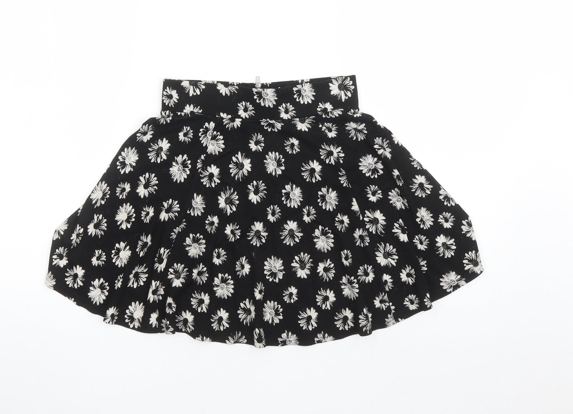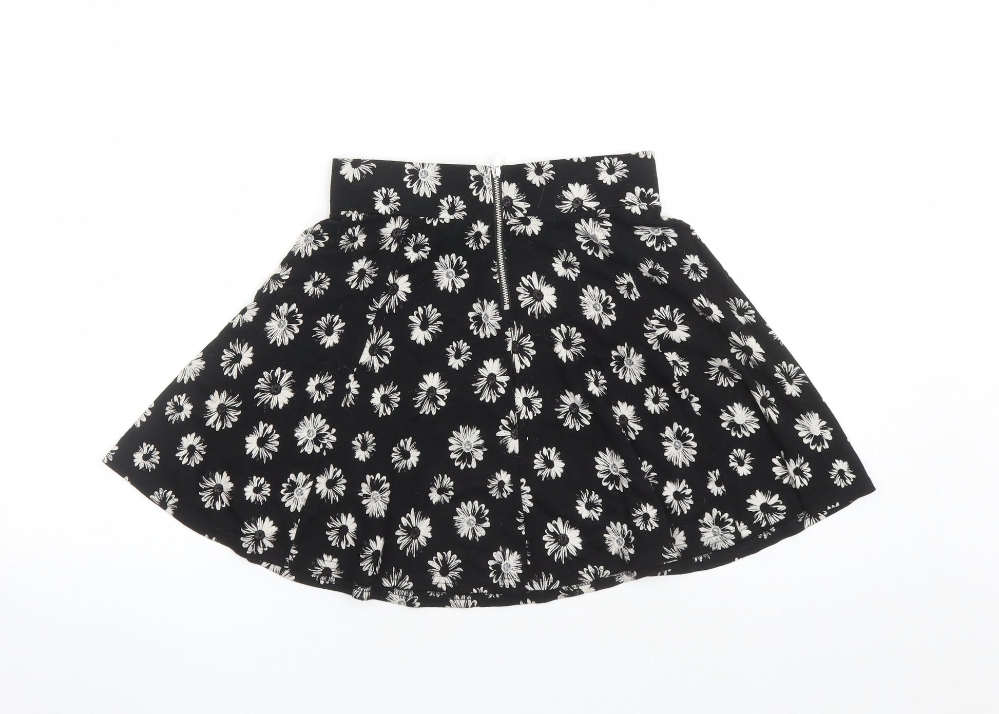 Divided by H&M Womens Black Floral Viscose Skater Skirt Size XS Zip