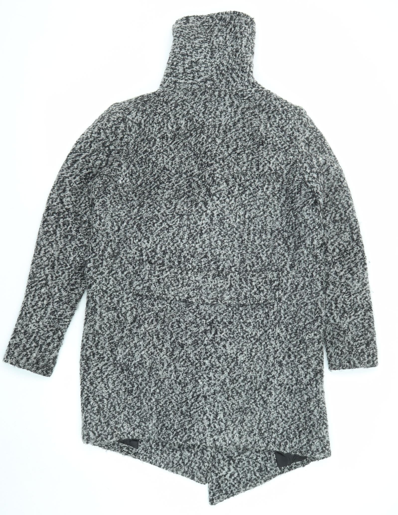 Divided by H&M Womens Black Geometric Overcoat Coat Size 10 Snap