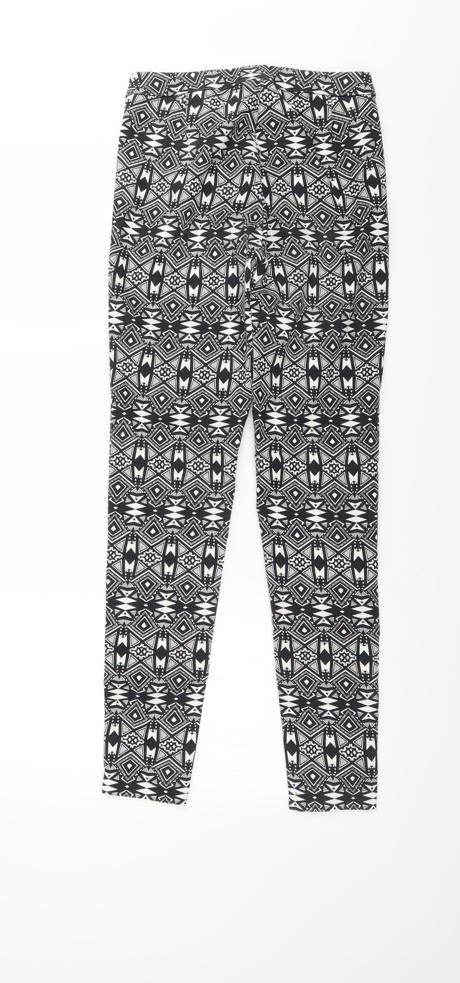 Divided by H&M Womens Black Geometric Trousers Size 10 L28 in