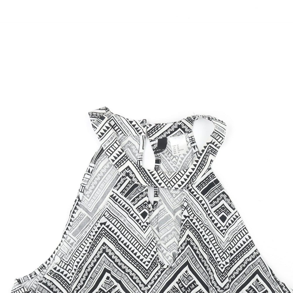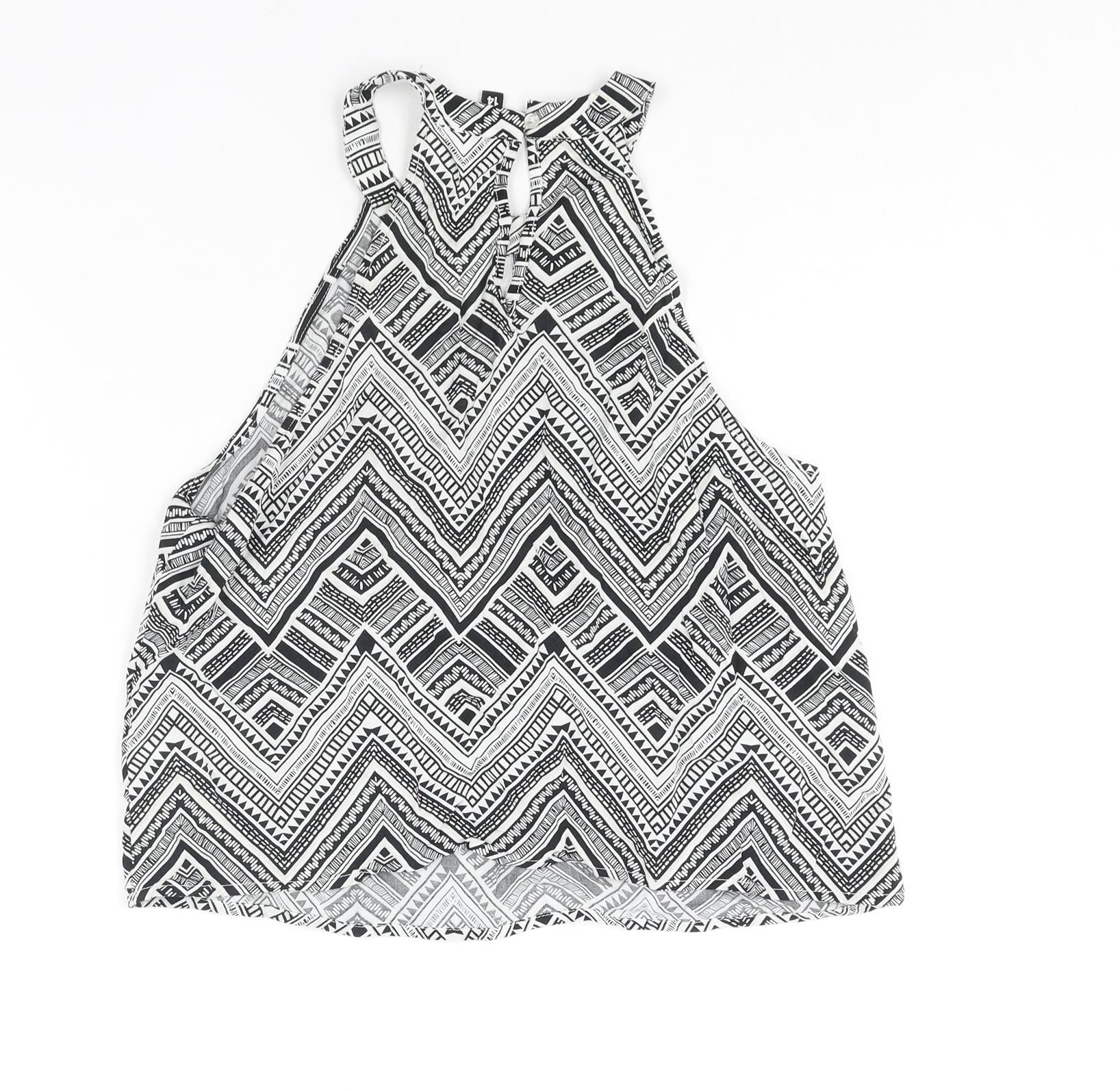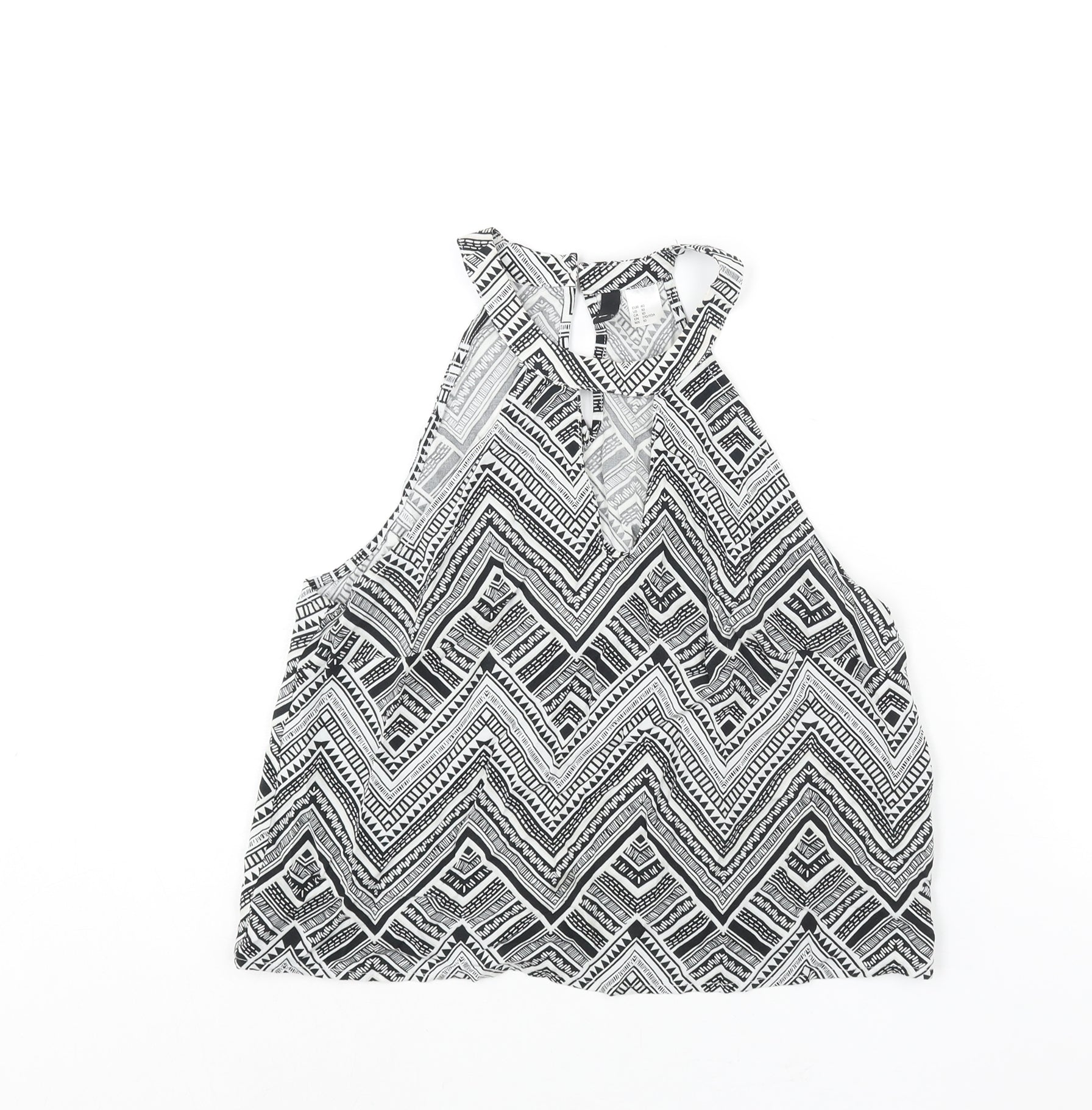 Divided by H&M Womens Black Geometric Viscose Camisole Blouse Size 14 Round Neck - Keyhole Neck