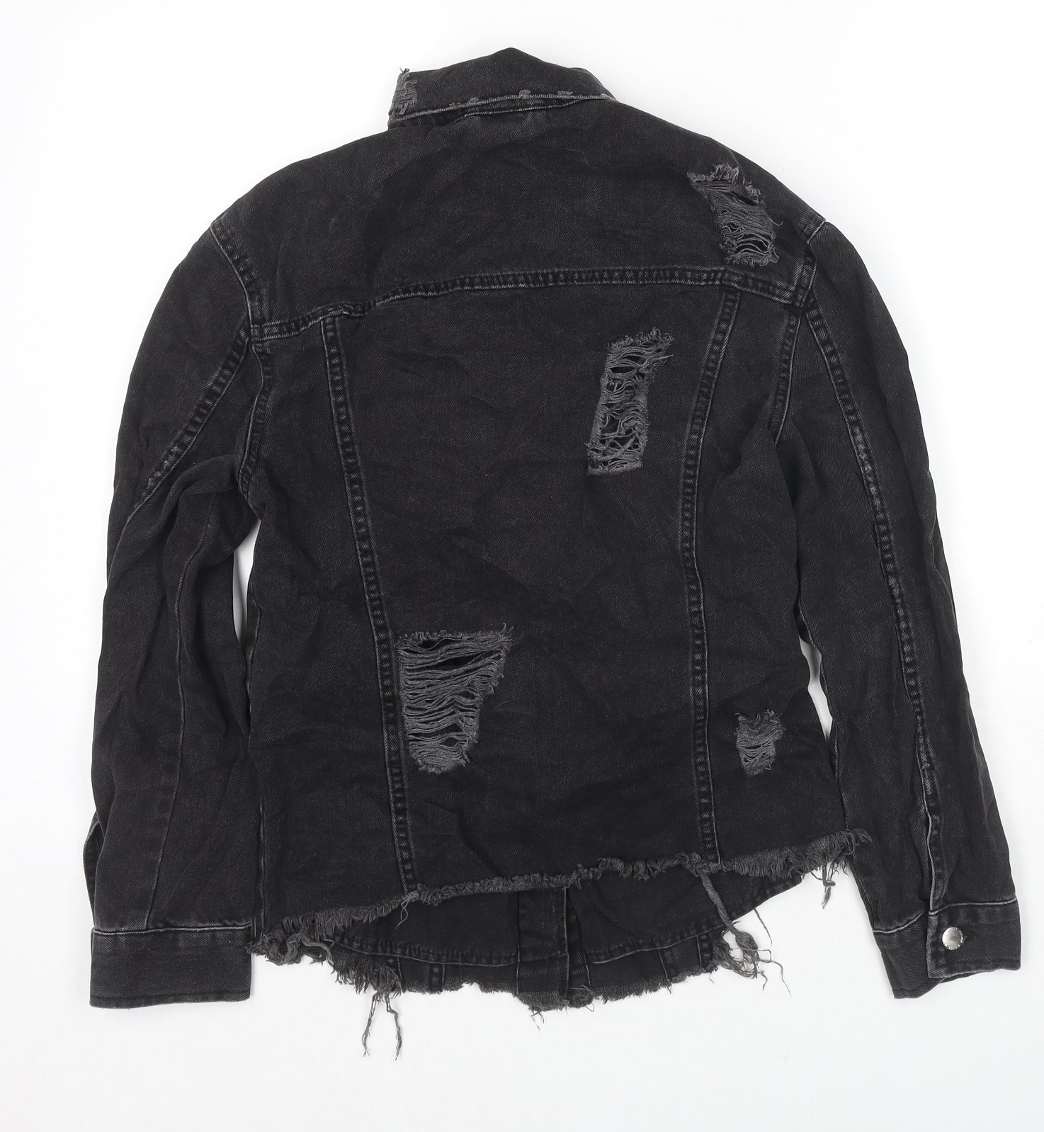Divided by H&M Womens Black Jacket Size 4 Button - Distressed