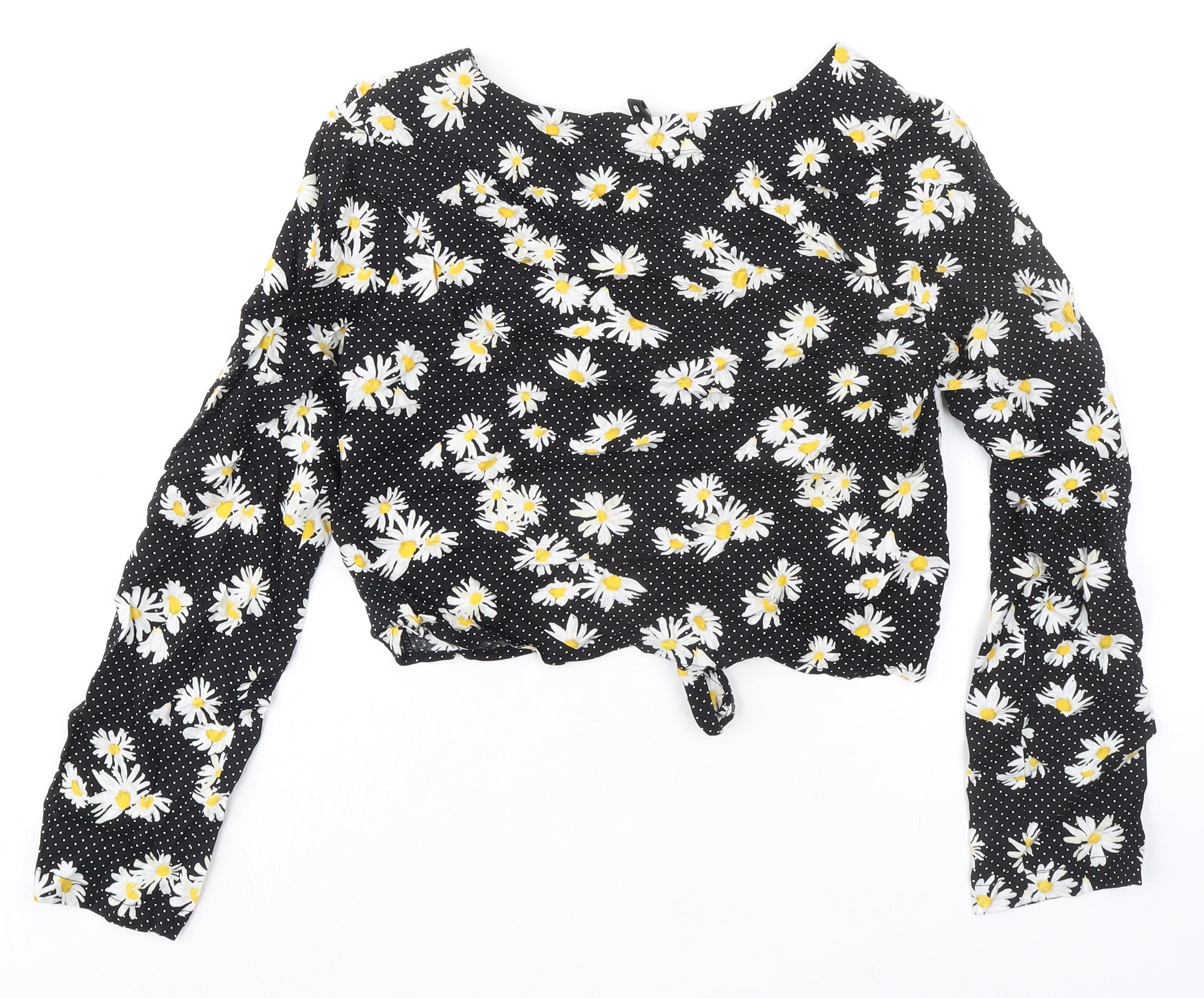 Divided by H&M Womens Black Polka Dot Viscose Cropped Button-Up Size 8 V-Neck - Knot Front