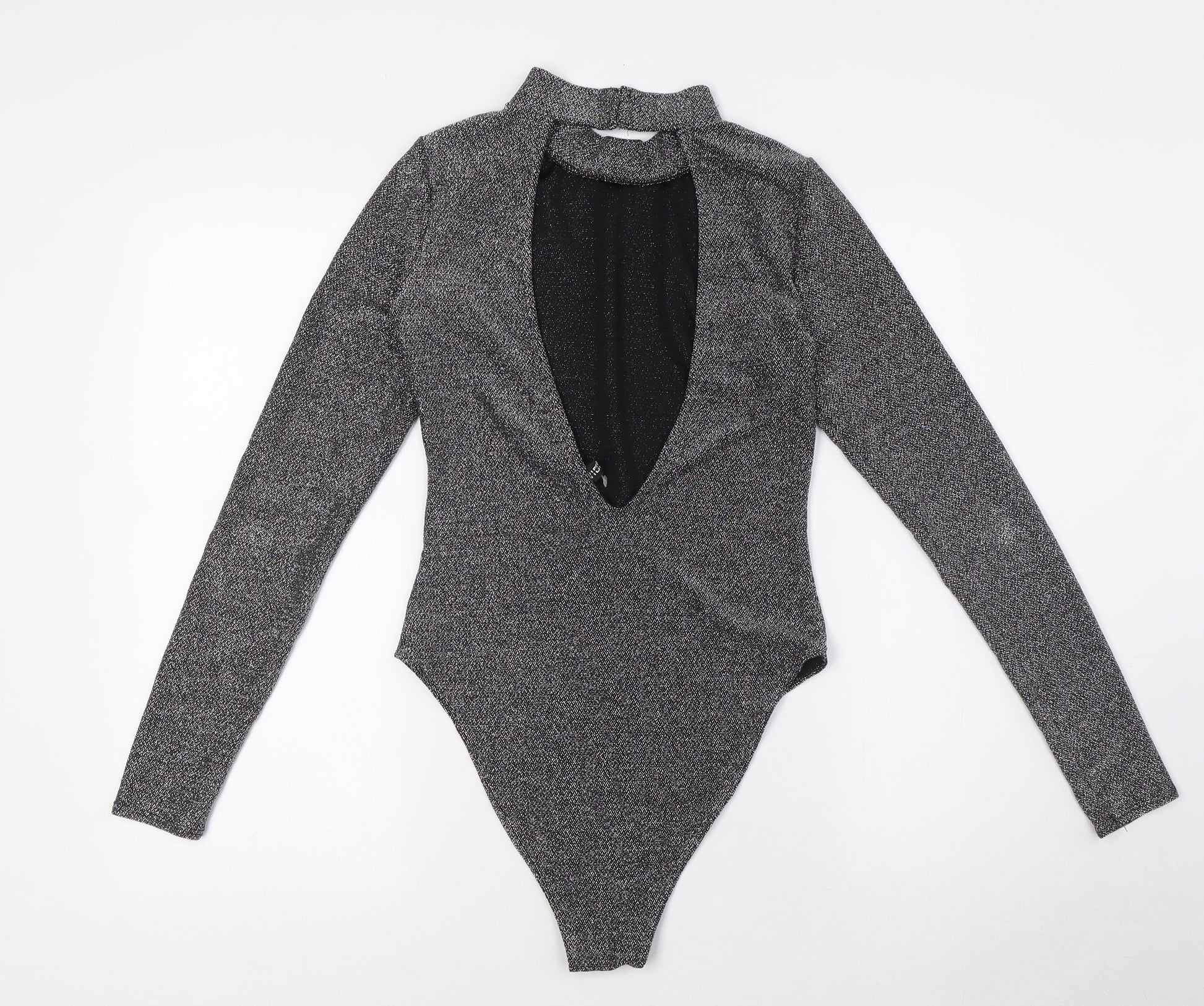 Divided by H&M Womens Black Polyamide Bodysuit One-Piece Size S Snap - Sliver Flecks