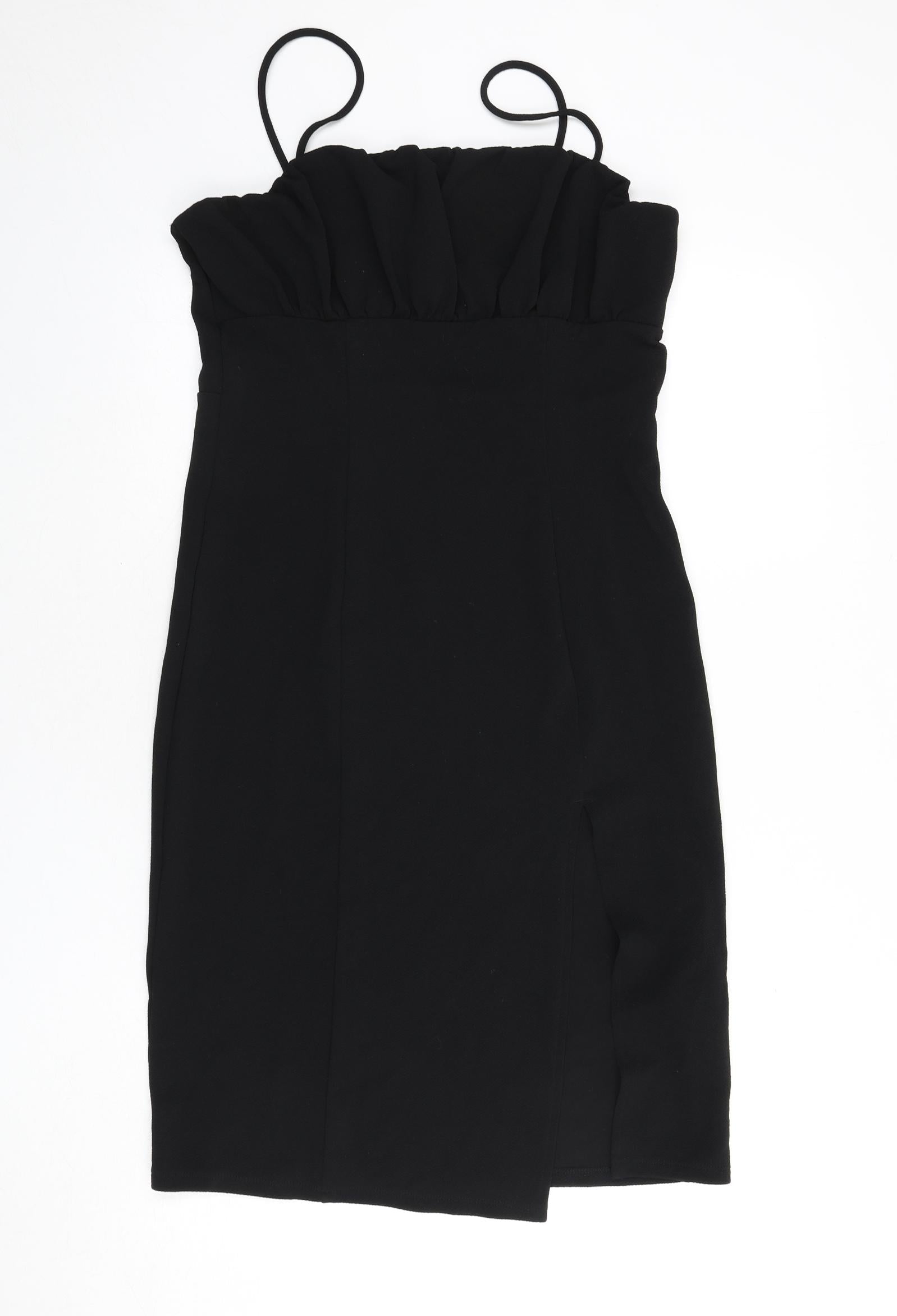 Divided by H&M Womens Black Polyester Bodycon Size L Square Neck Pullover - Slit