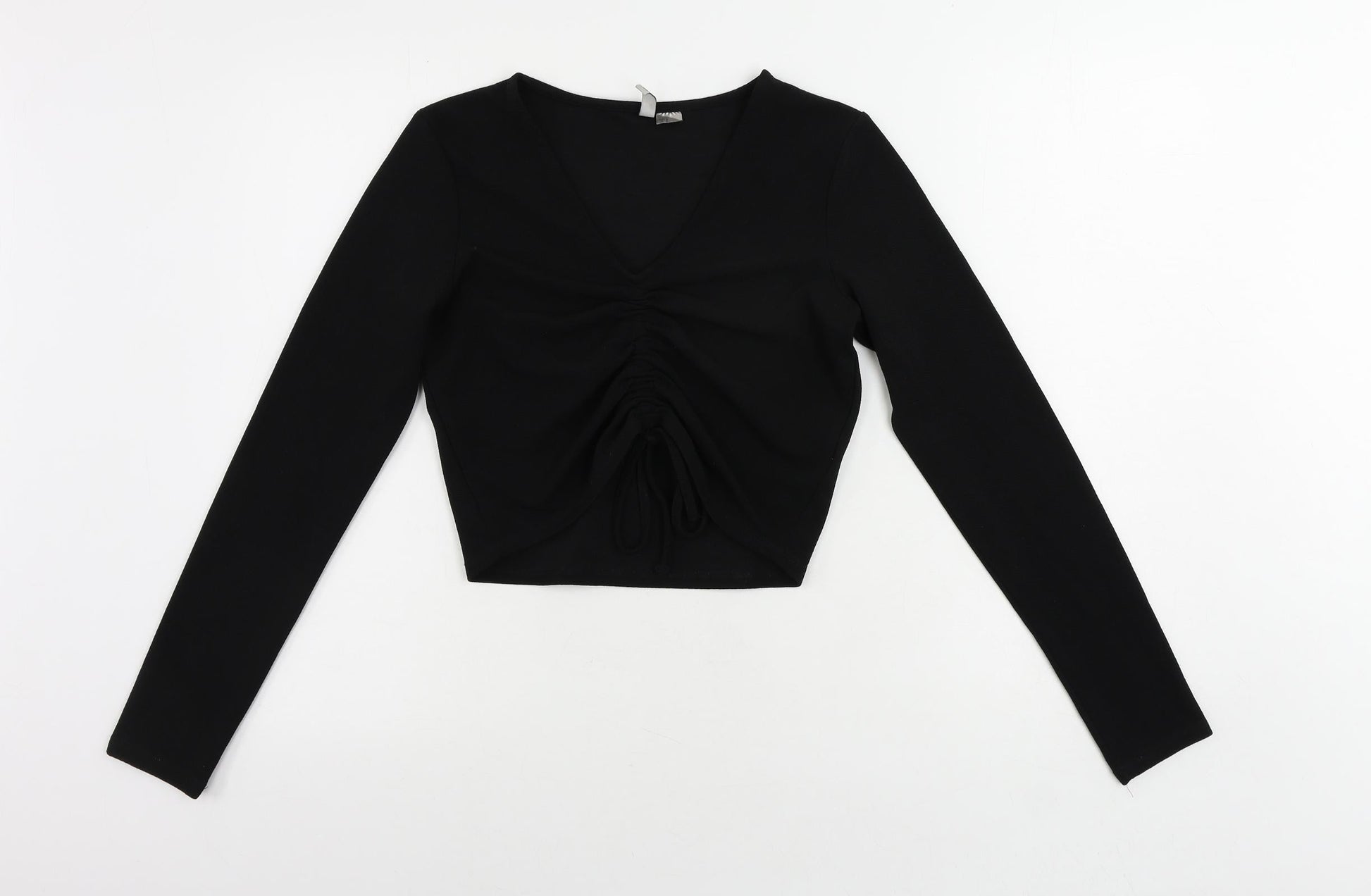 Divided by H&M Womens Black Polyester Cropped Blouse Size S V-Neck - Ruched