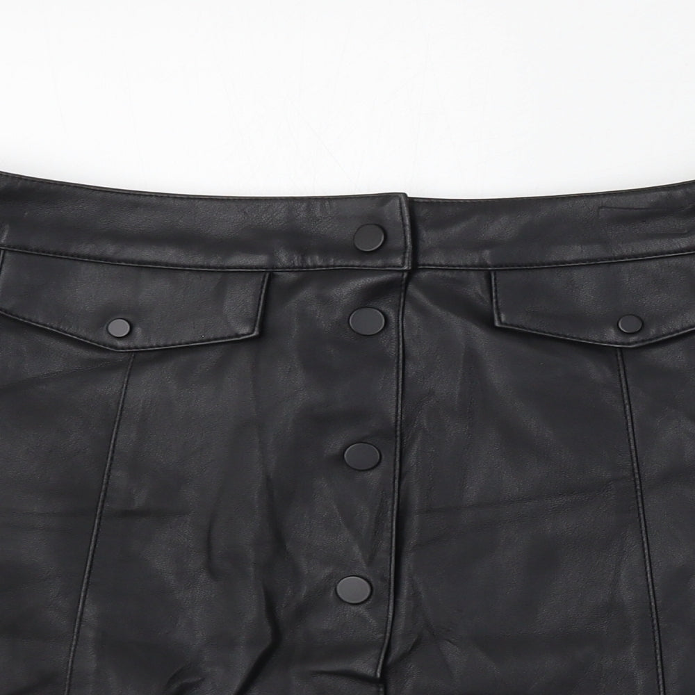 Divided by H&M Womens Black Polyurethane A-Line Skirt Size 8 Snap