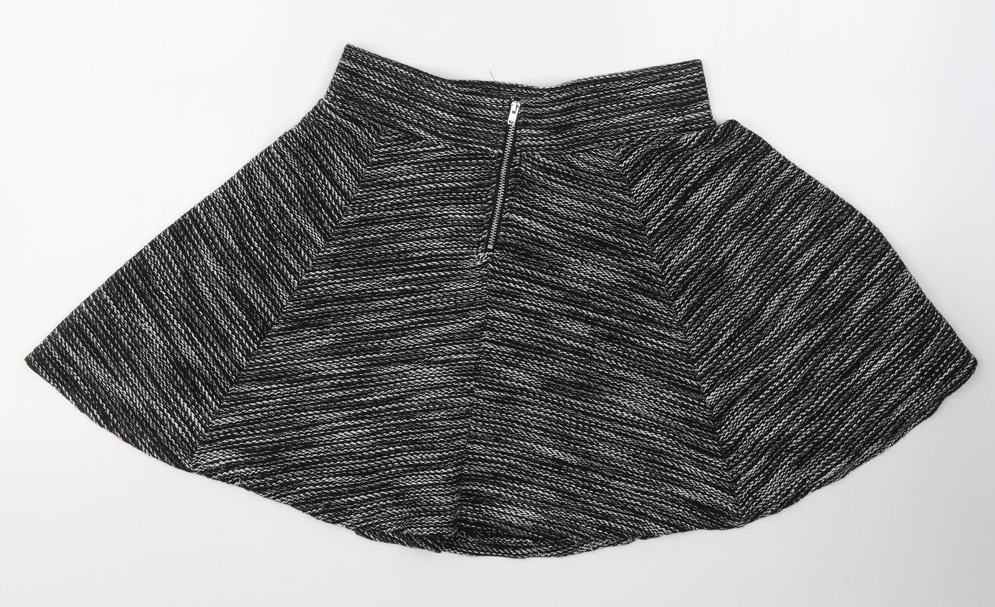 Divided by H&M Womens Black Striped Cotton Flare Skirt Size S Zip
