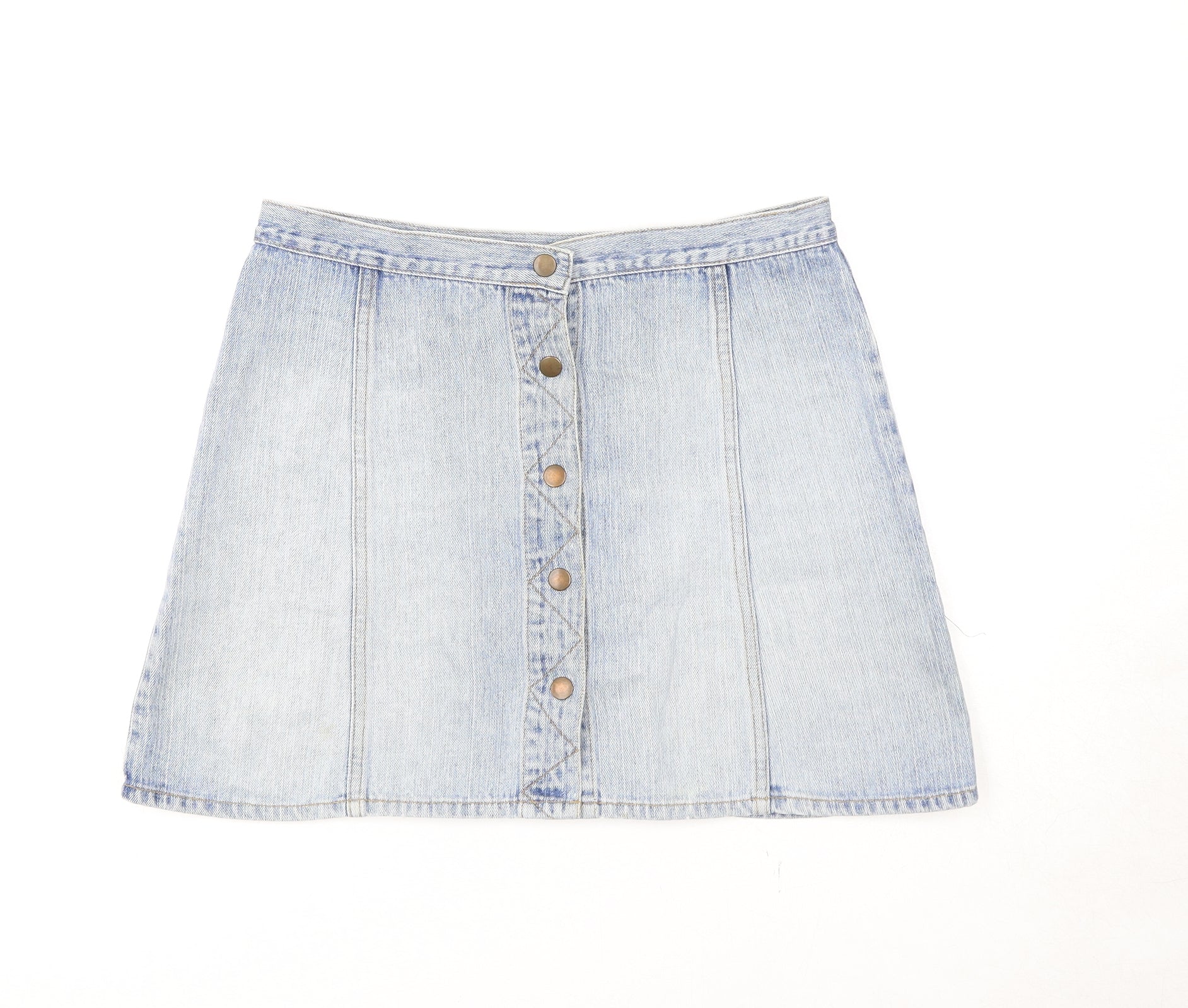 Divided by H&M Womens Blue Cotton A-Line Skirt Size M Button