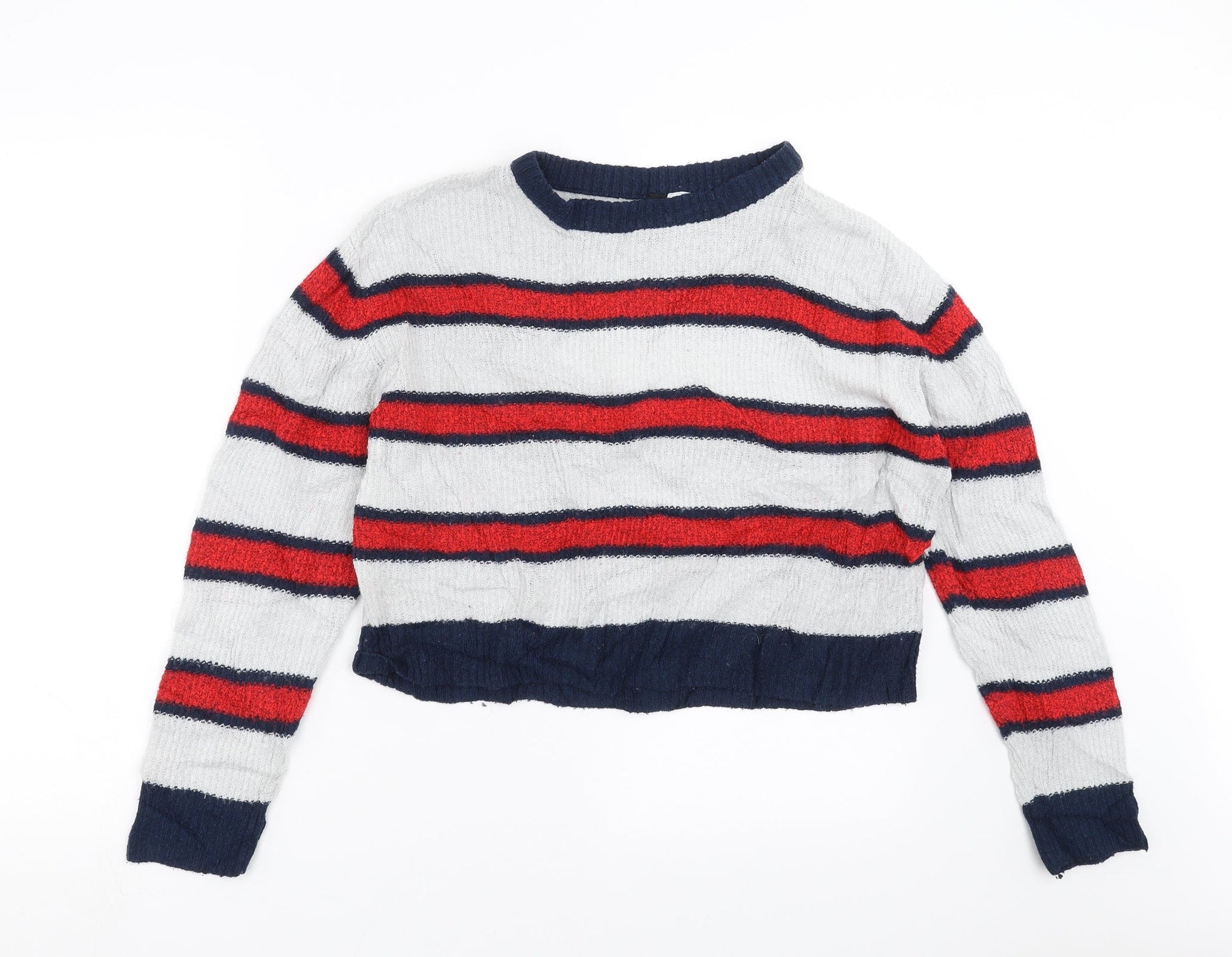 Divided by H&M Womens Blue Striped Knit Pullover Jumper Size S - cropped