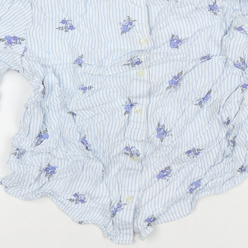 Divided by H&M Womens Blue Striped Viscose Basic Button-Up Size 4 Round Neck
