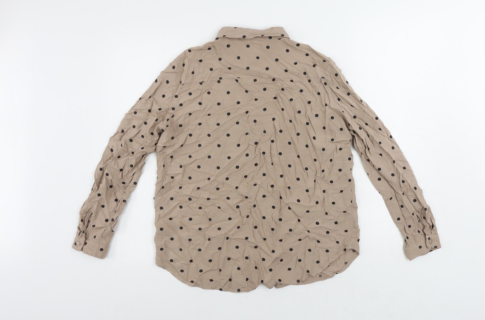 Divided by H&M Womens Brown Polka Dot Viscose Basic Button-Up Size 6 Collared