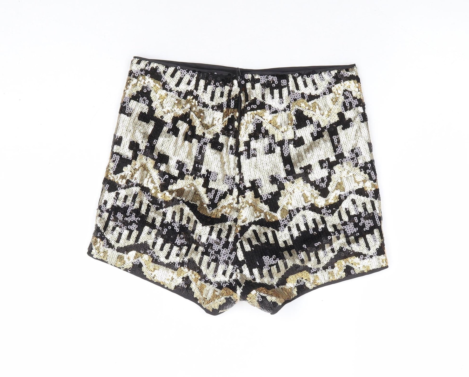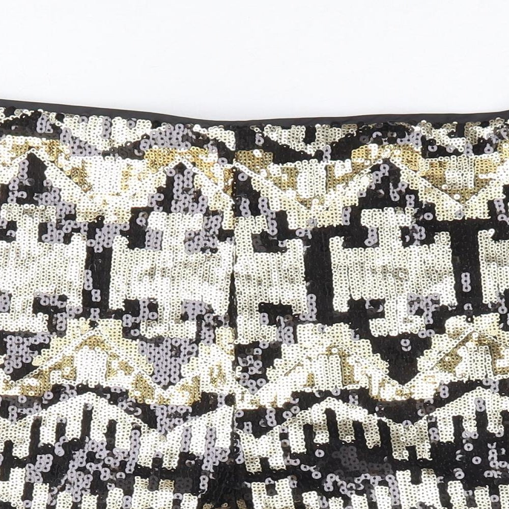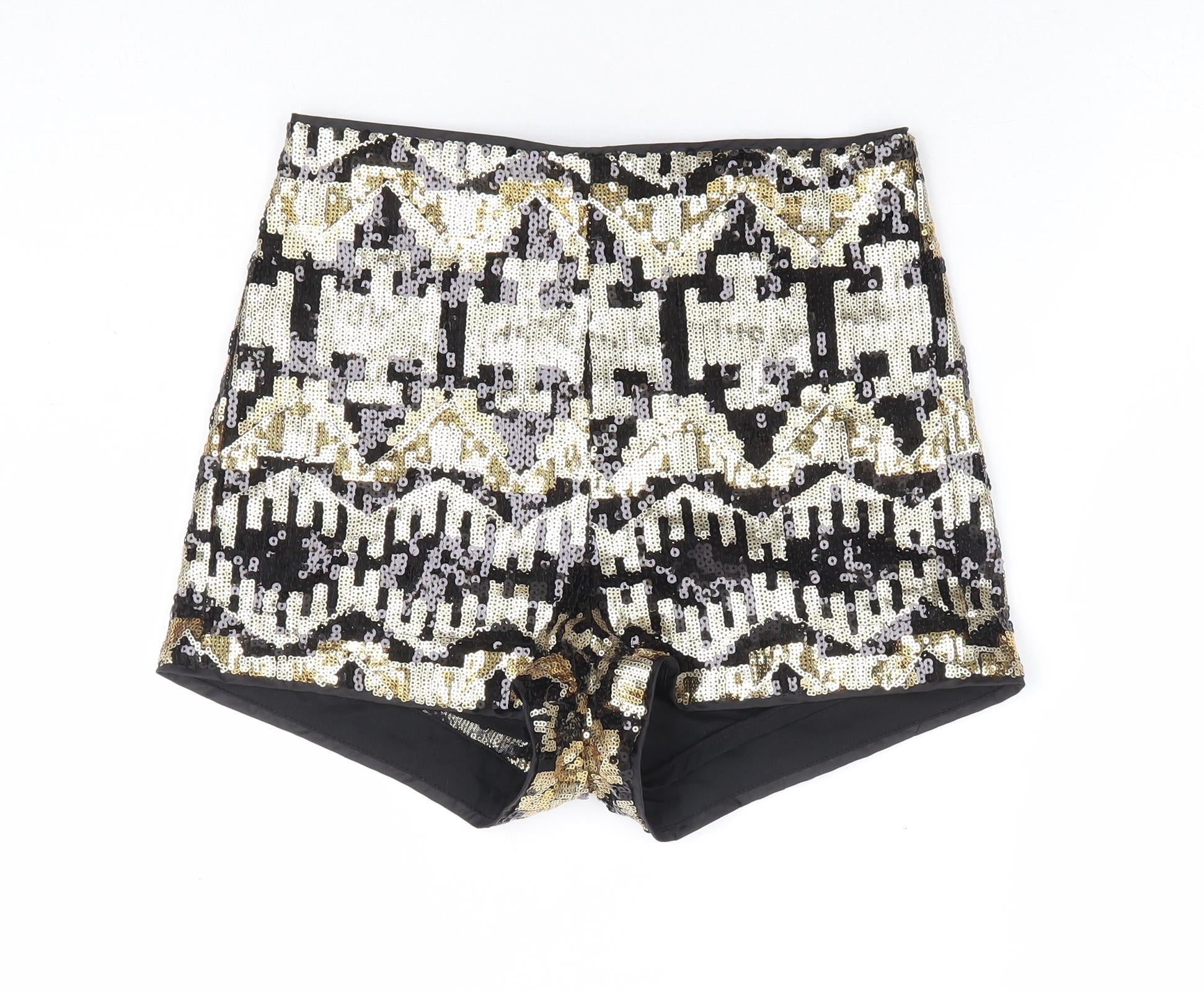 Divided by H&M Womens Gold Geometric Polyester Hot Pants Shorts Size 8 L4 in Regular Zip