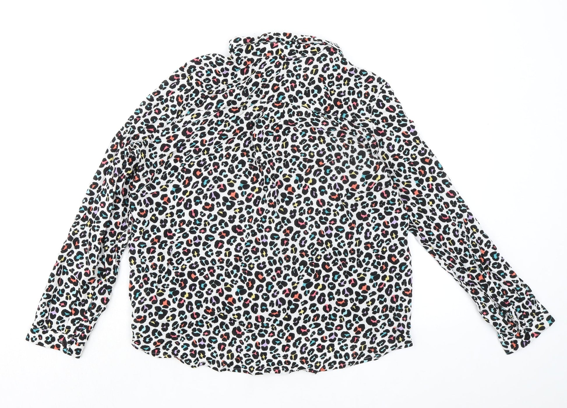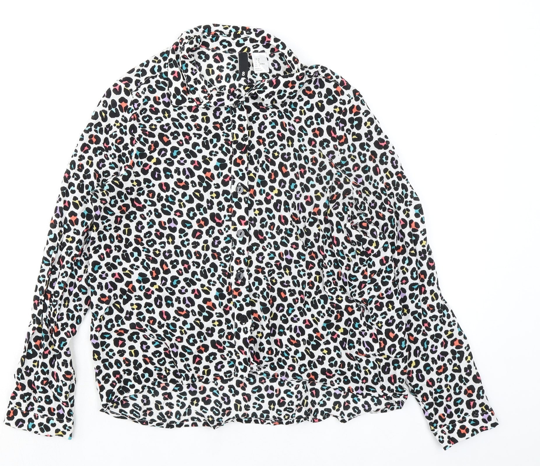 Divided by H&M Womens Multicoloured Animal Print Viscose Basic Button-Up Size 8 Collared - Leopard Print