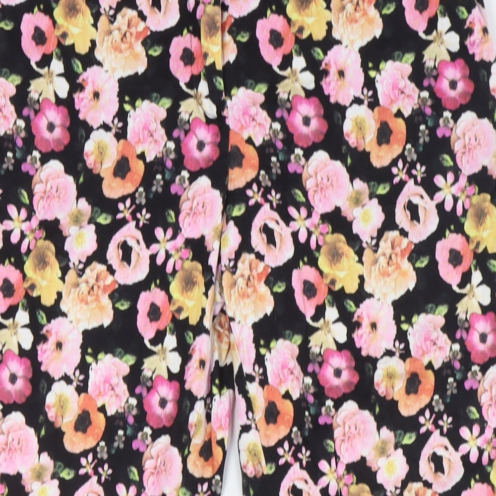 Divided by H&M Womens Multicoloured Floral Cotton Trousers Size 10 L27 in Regular Zip