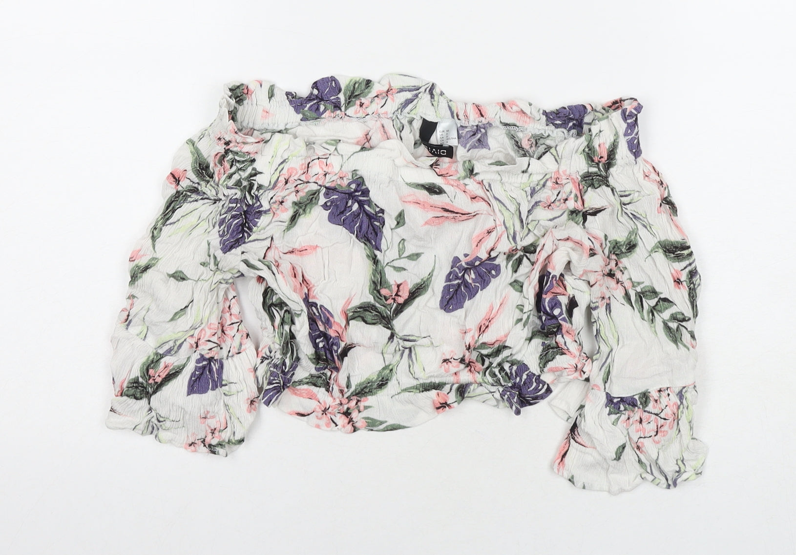Divided by H&M Womens Multicoloured Floral Viscose Cropped T-Shirt Size 10 Off the Shoulder