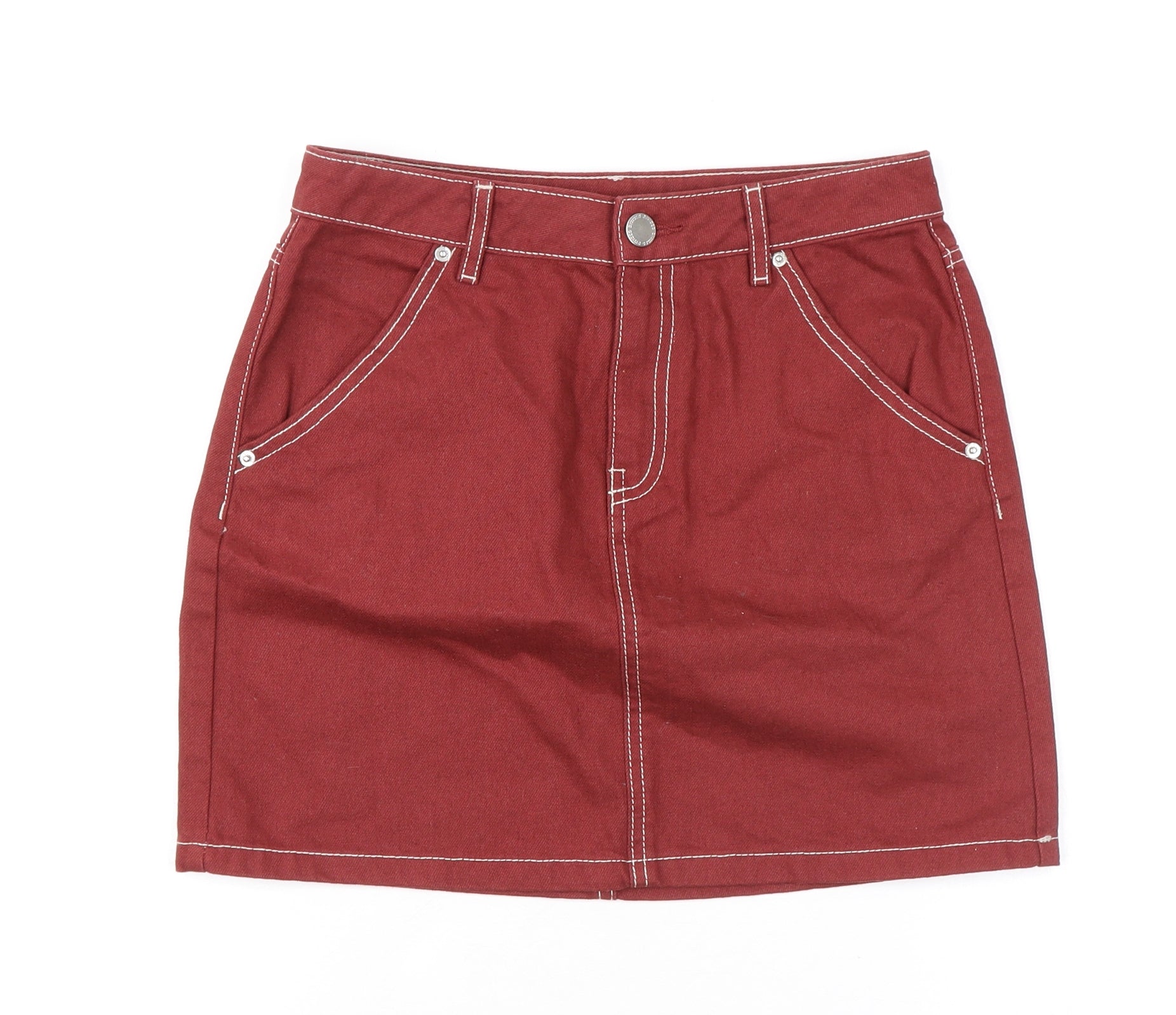 Divided by H&M Womens Red Cotton Mini Skirt Size 6 Zip