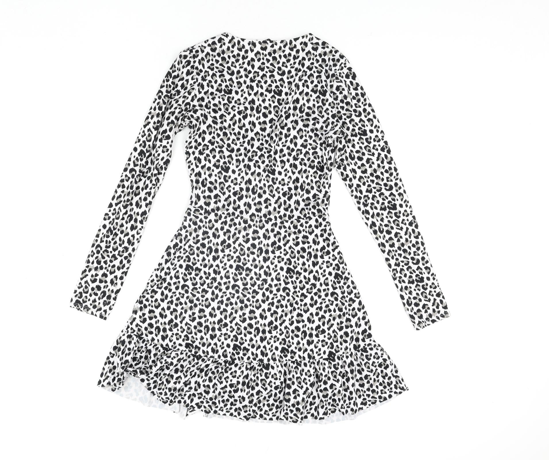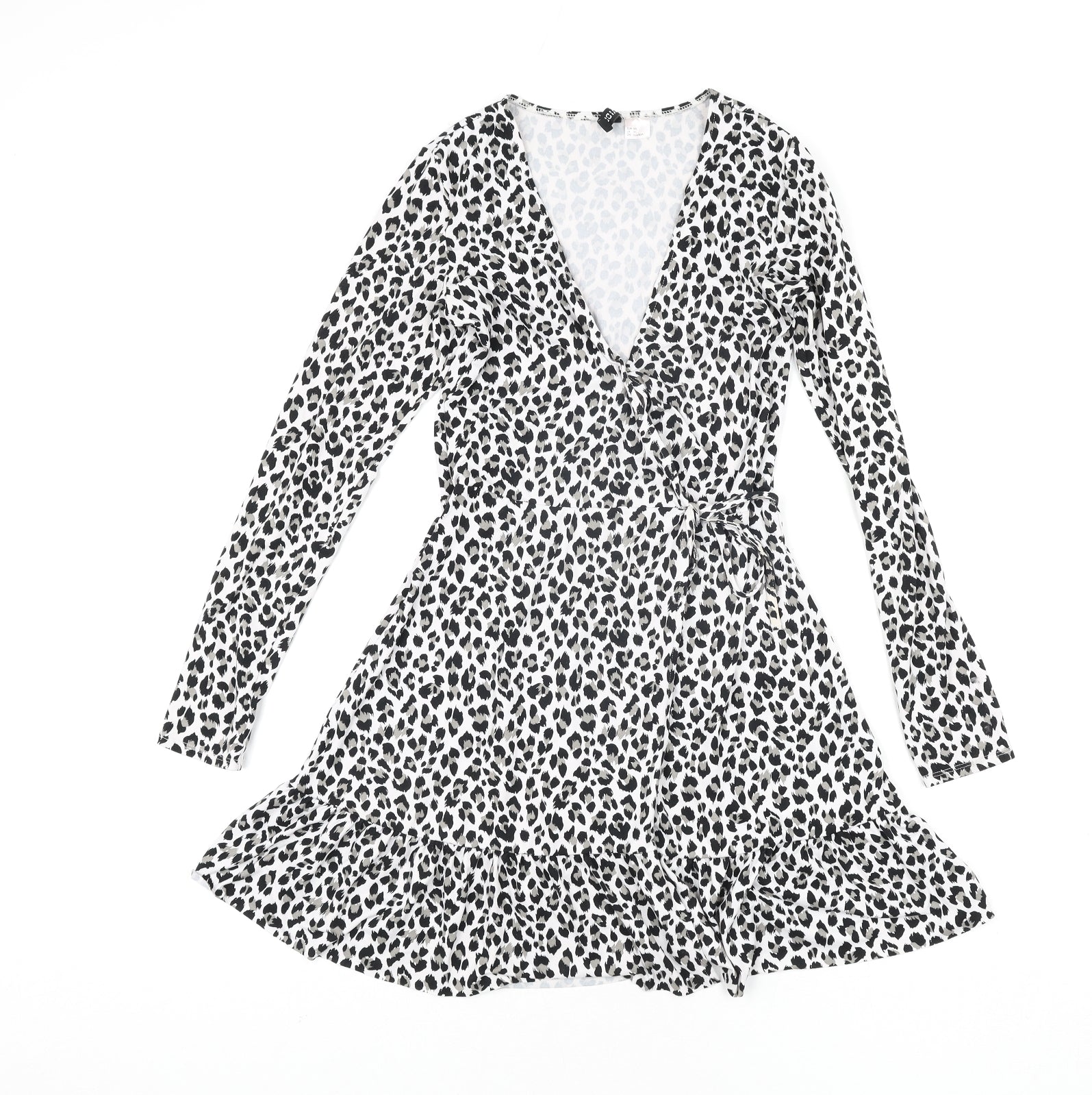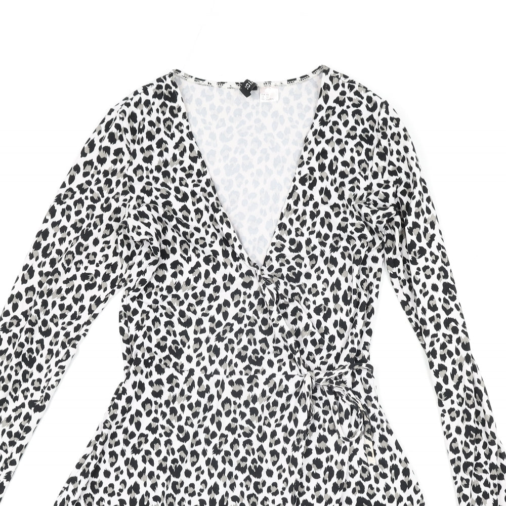 Divided by H&M Womens White Animal Print Polyester Wrap Dress Size XS V-Neck Tie - Leopard Print