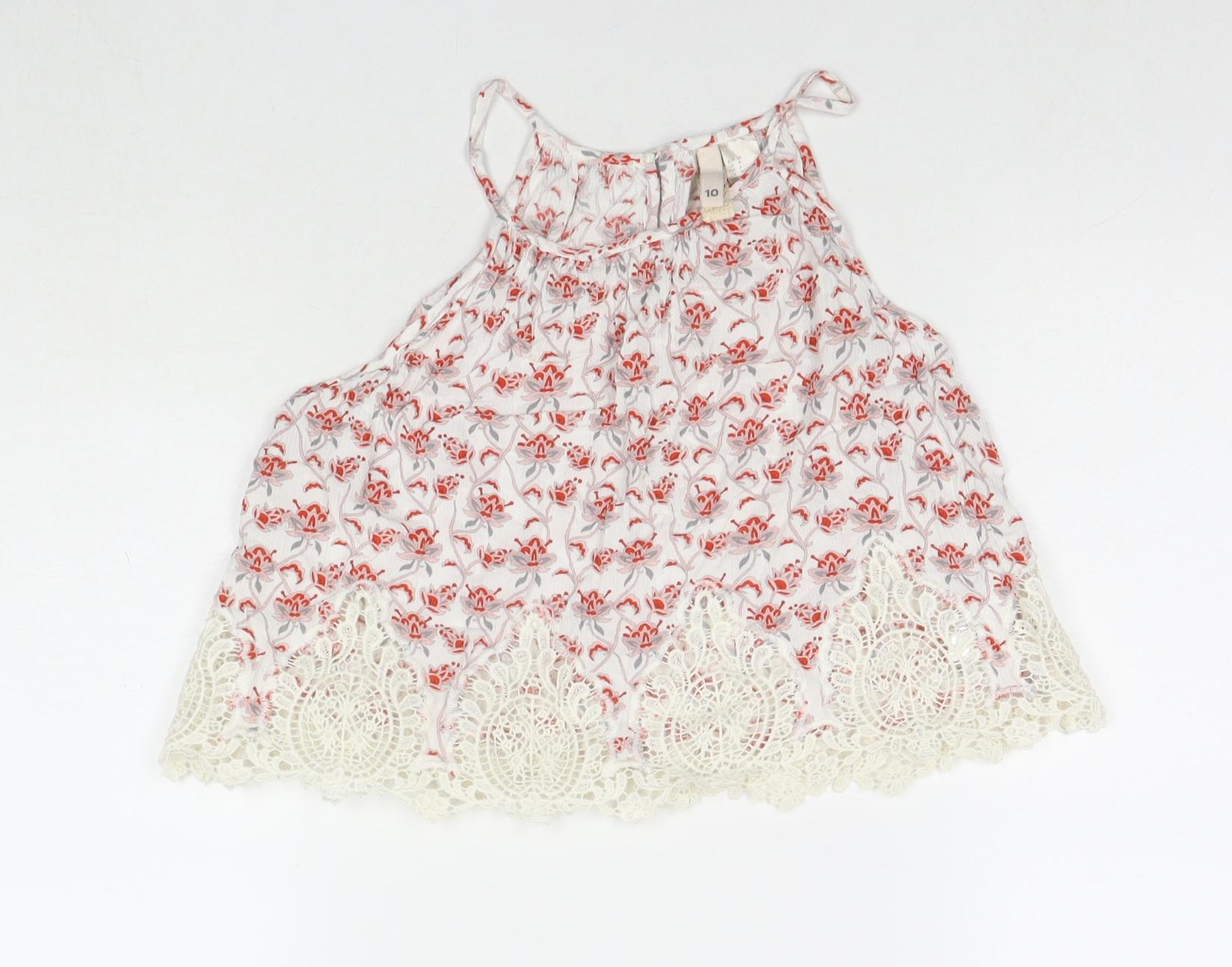 Divided by H&M Womens White Floral Viscose Basic Tank Size 10 Round Neck