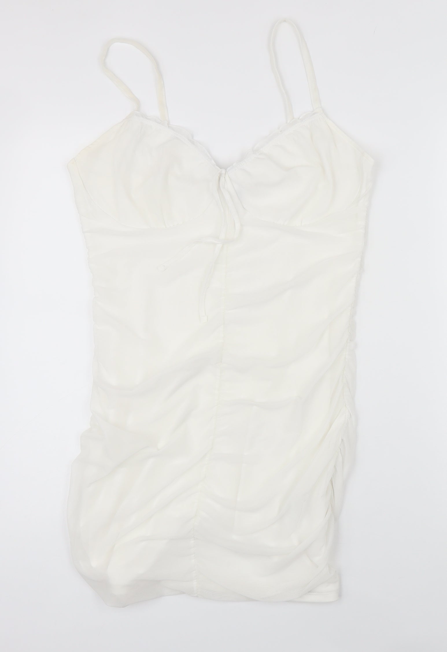 Divided by H&M Womens White Polyester A-Line Size L V-Neck