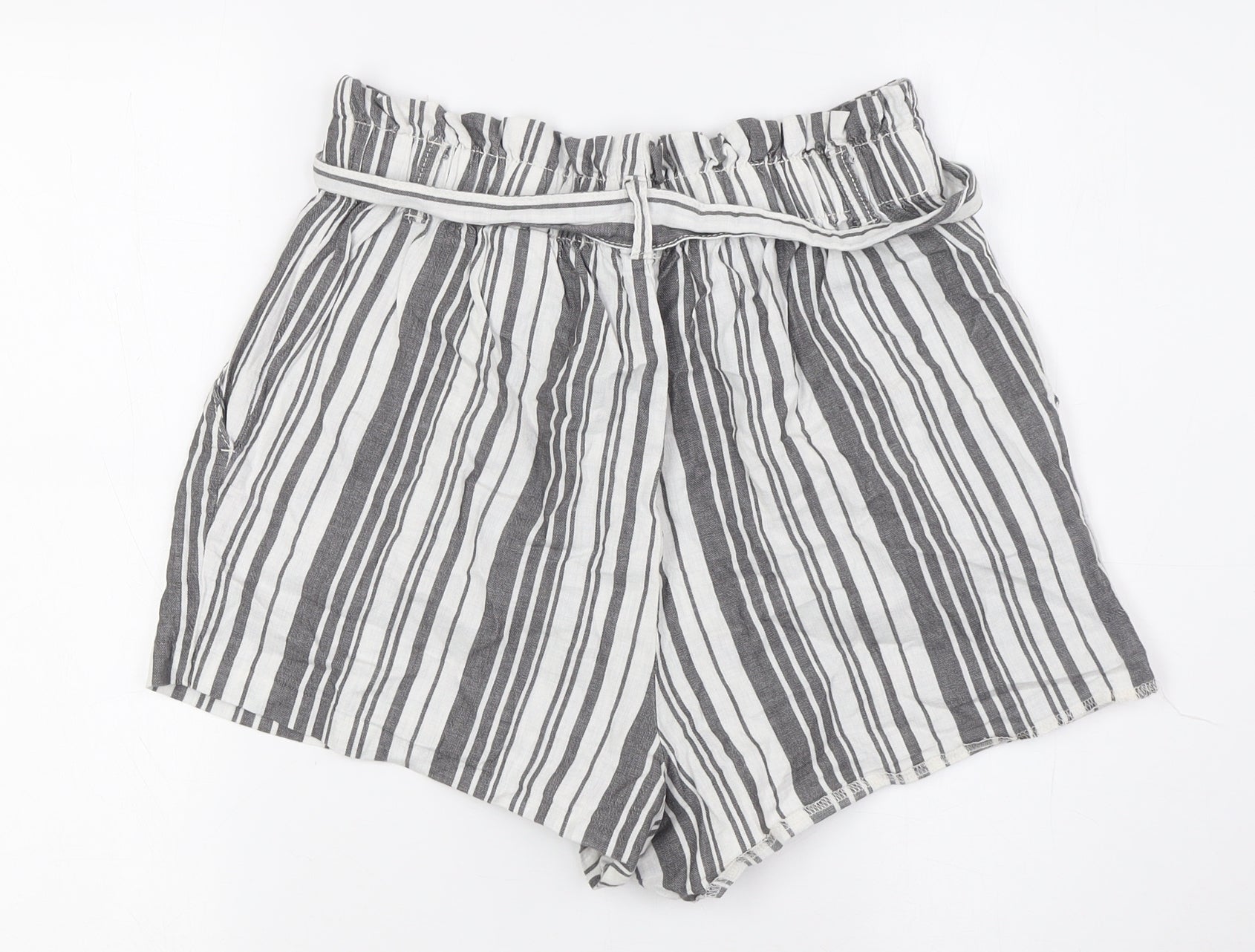 Divided by H&M Womens White Striped Cotton Basic Shorts Size 8 Regular