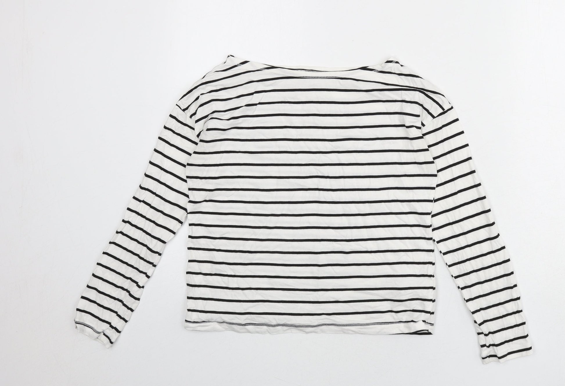 Divided by H&M Womens White Striped Cotton Basic T-Shirt Size XS Boat Neck