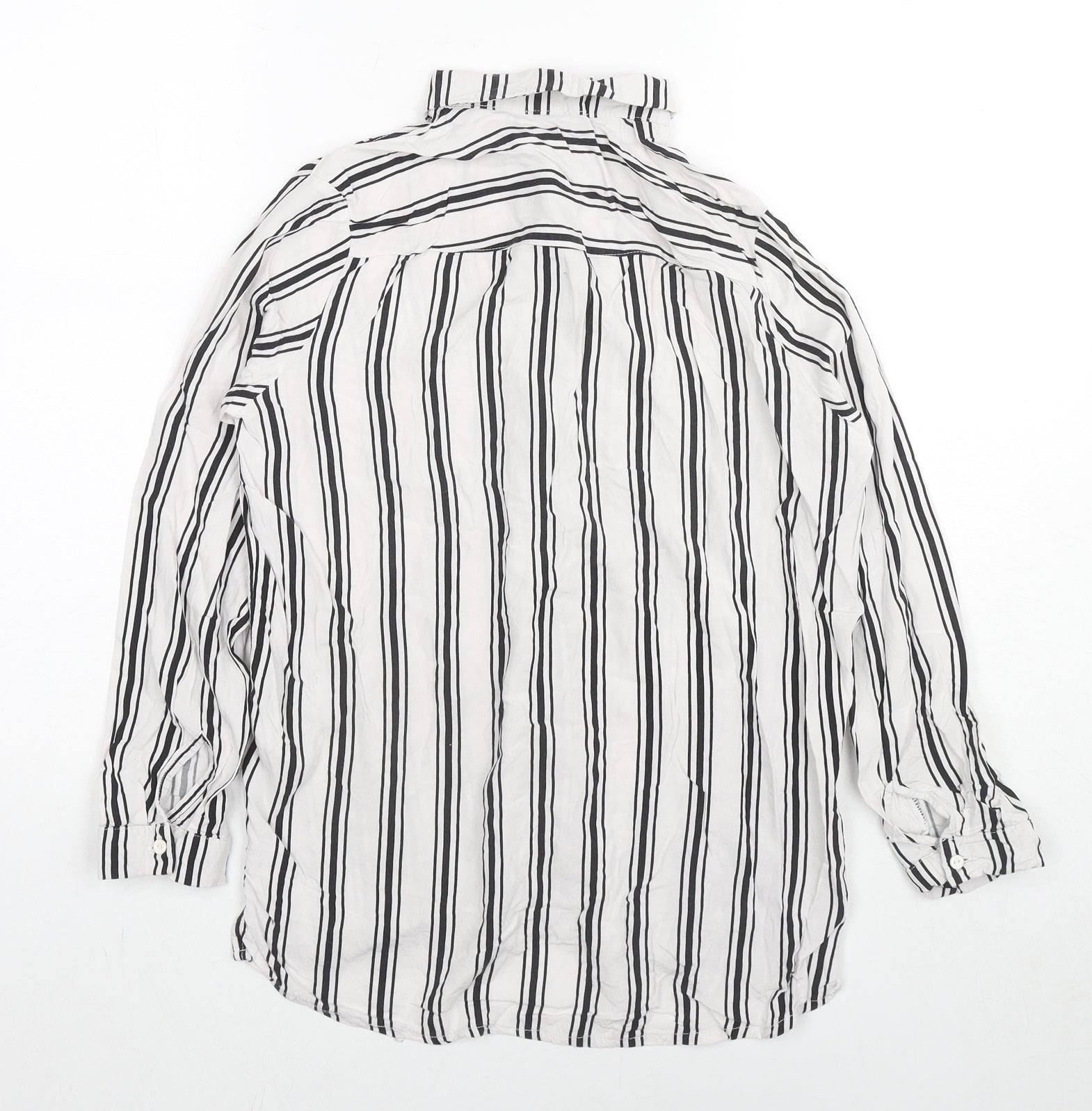Divided by H&M Womens White Striped Viscose Basic Button-Up Size 6 Collared